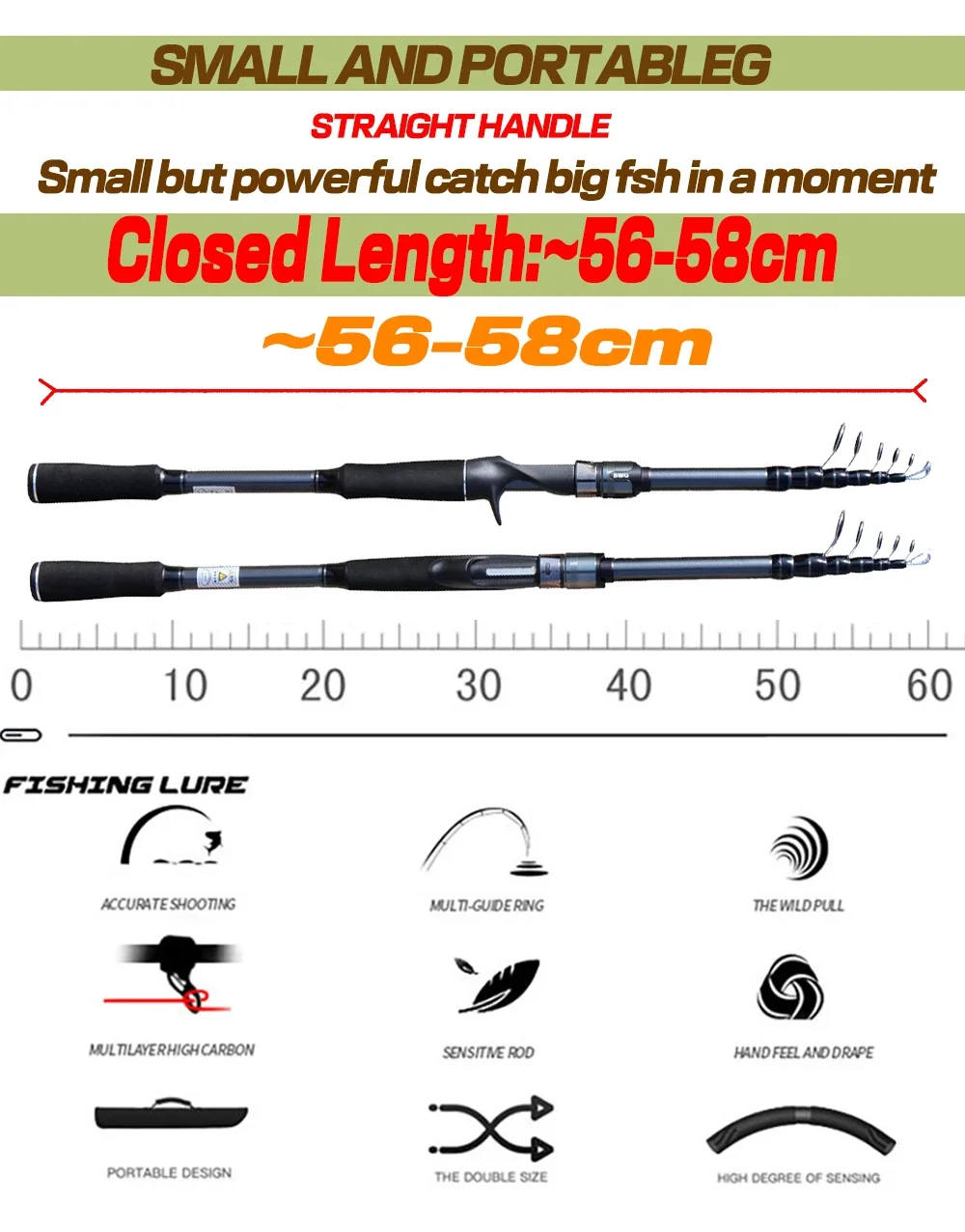 Caña de pescar ultraligera de carbono fundido/giratorio cebo de Punta sólida WT 8-18g señuelo telescópico portátil poste M potencia rápida con mango EVE