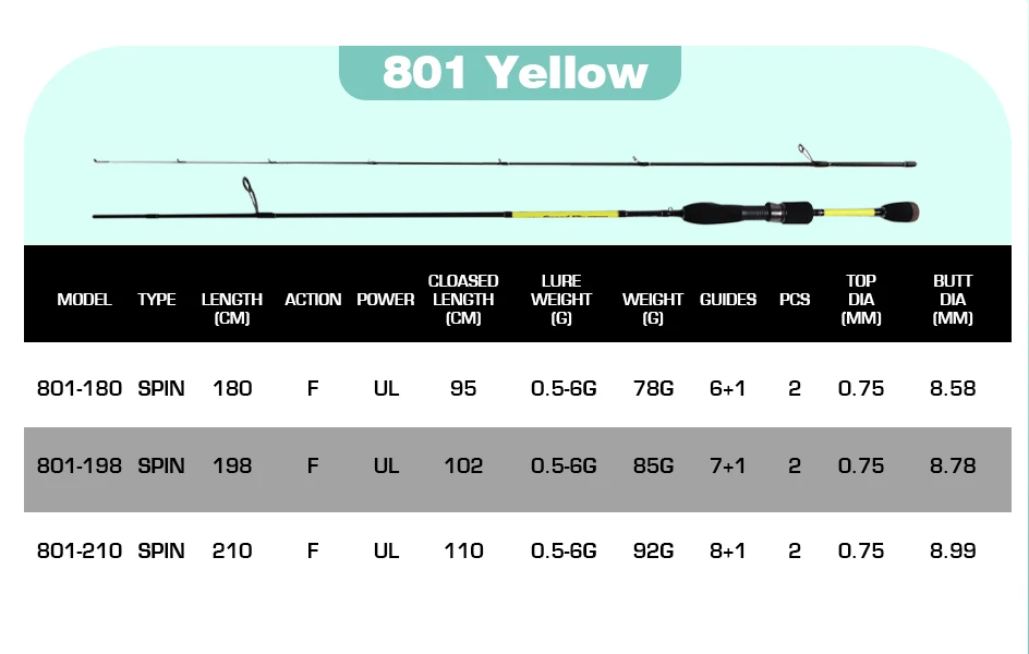 Peso del señuelo 801 0,5-6G Peso de la línea 2-5LB