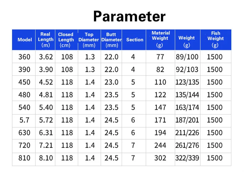 Longitud: 3,6-8,1 m Longitud cerrada: 108-118 cm