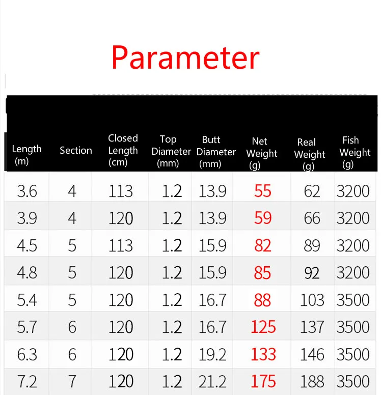 Longitud: 3,6-7,2 m Longitud cerrada: 113/120cm