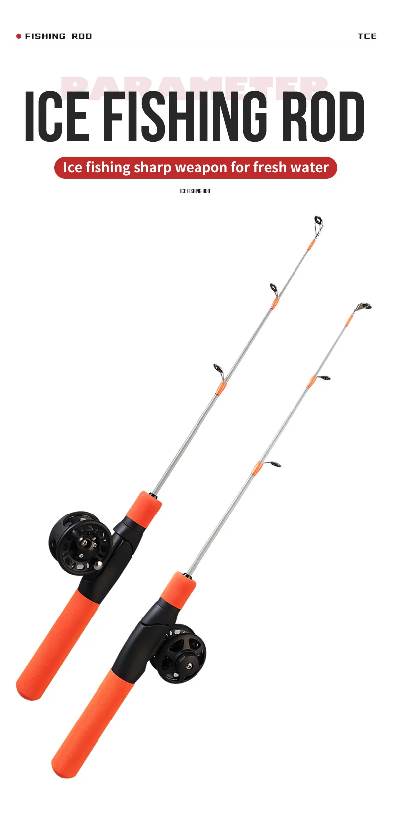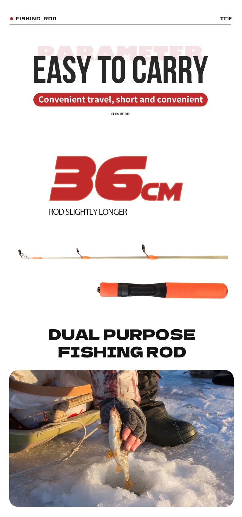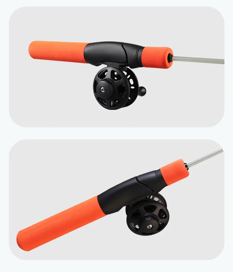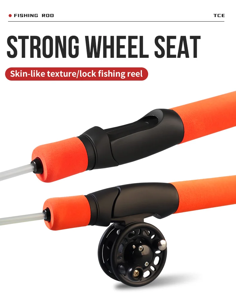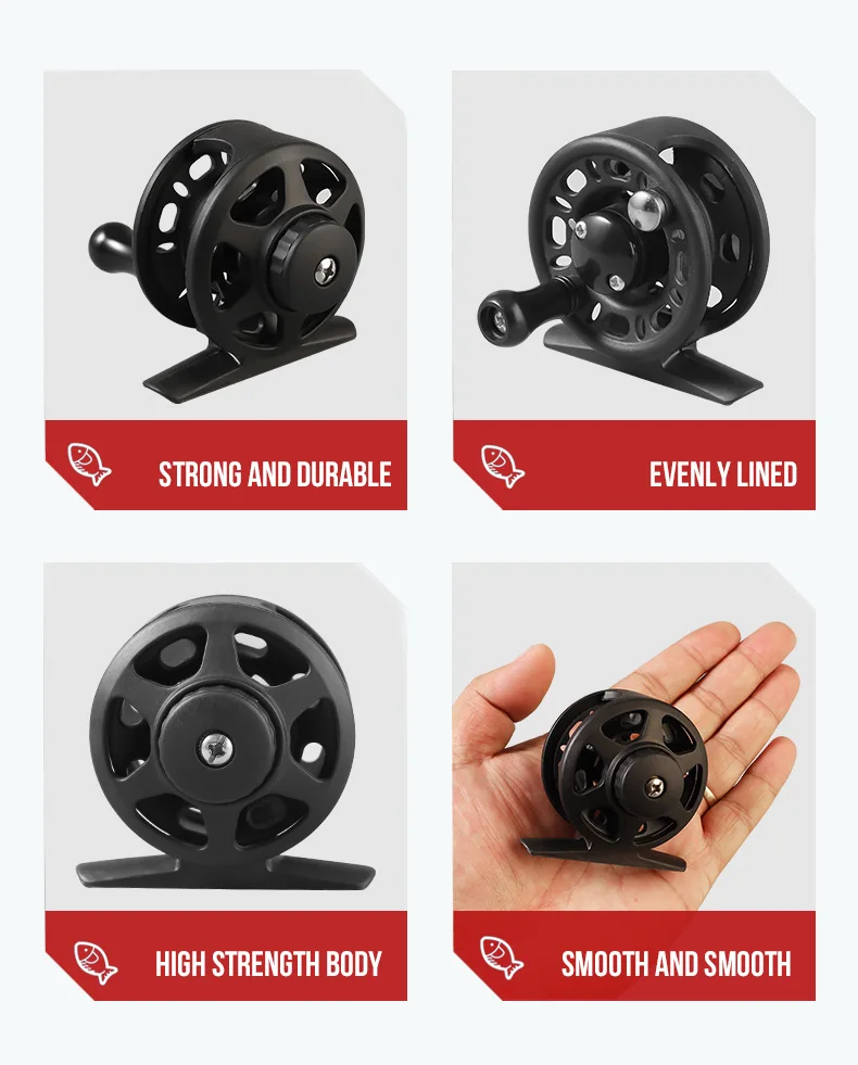2, 【Base de rueda reforzada】La caña de pescar en hielo está diseñada con una base de rueda reforzada, juntas de acero inoxidable, bien cortadas, fuertes y duraderas, el sólido general no quita la rueda.