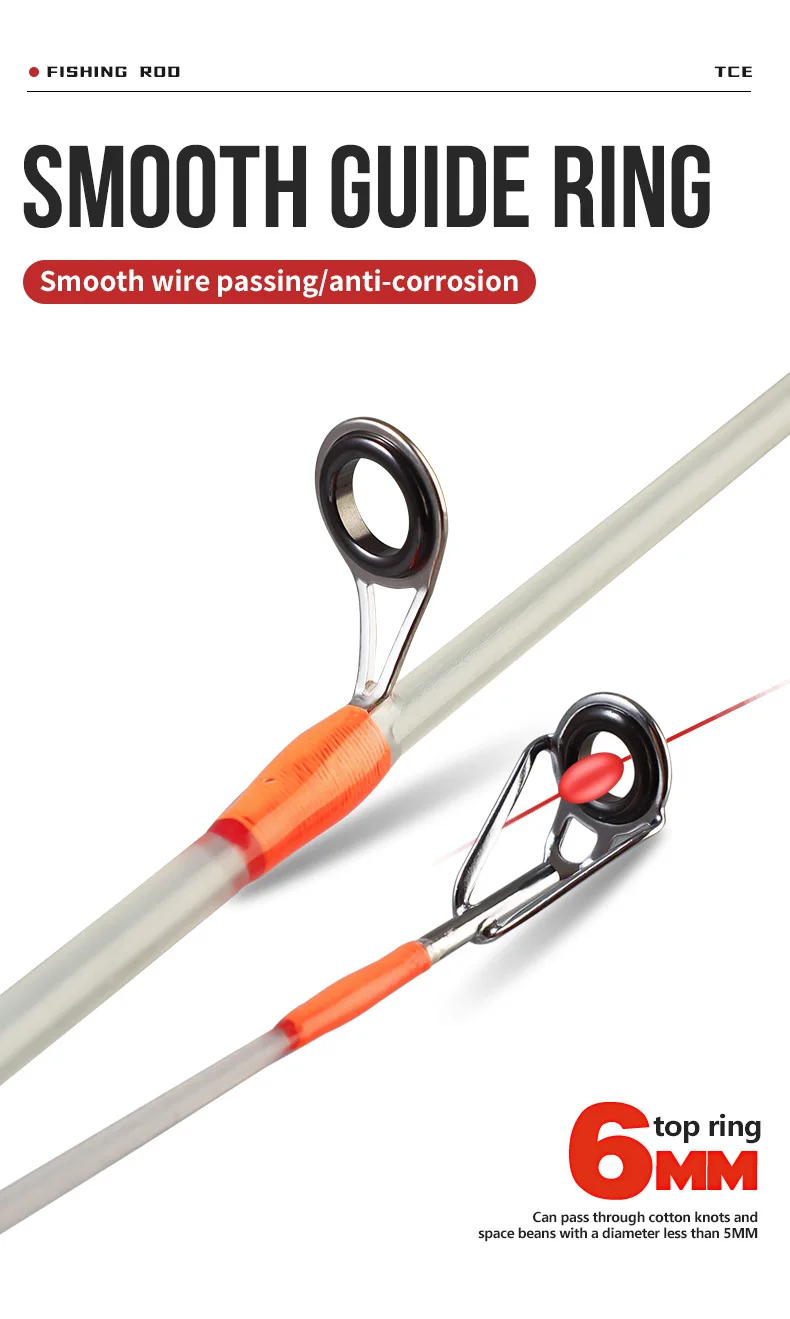 1, 【caña de pescar de fibra de vidrio】 La caña de pescar ultraligera está hecha de material de fibra de vidrio, lo que la hace resistente y duradera; revestimiento de pintura para hornear Piano, resistente al desgaste y a los arañazos.