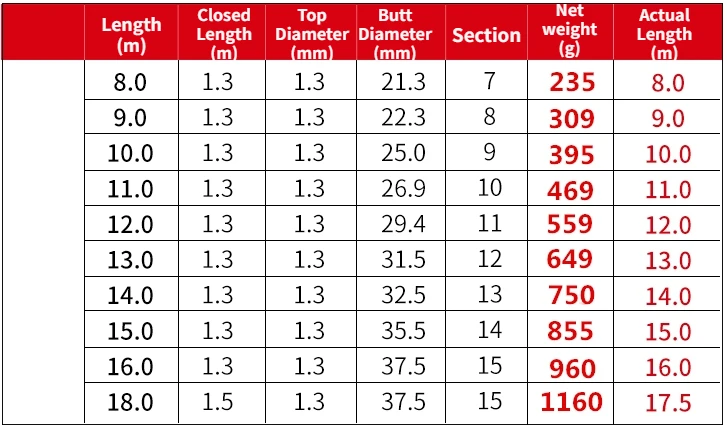 Longitud: 8-18m Longitud cerrada: 130cm