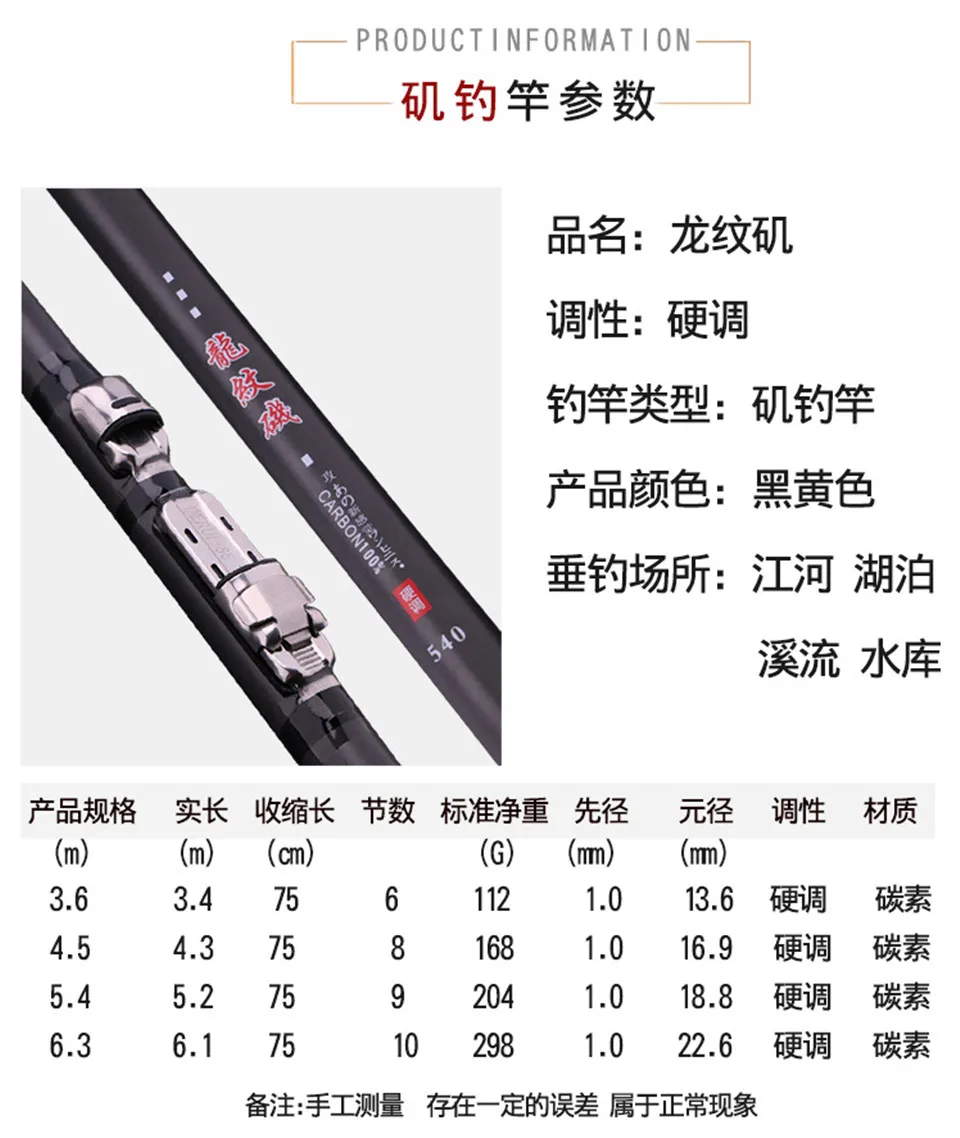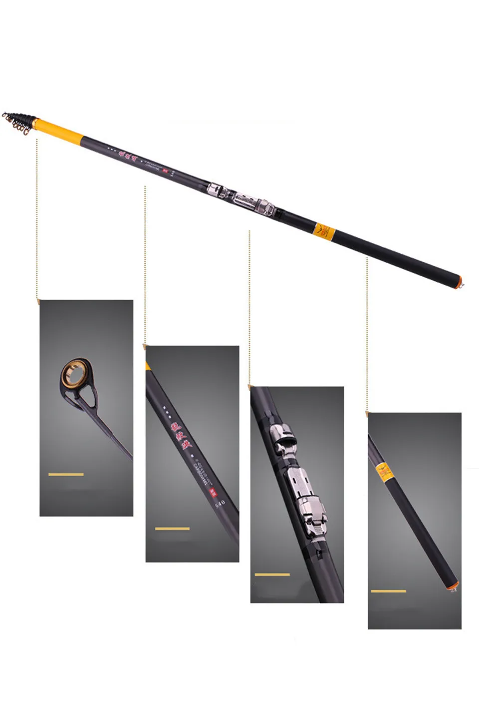Características:1. Siéntete cómodo2. Anillo guía de cerámica de acero inoxidable3. Tarjetero metálico FujiEl paquete incluye: 1 caña de pescar (sin carrete)Nota:Puede haber algunas diferencias en el peso aproximado y la longitud.