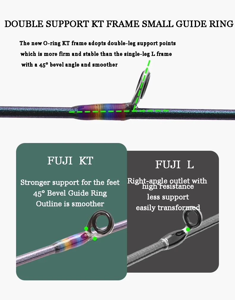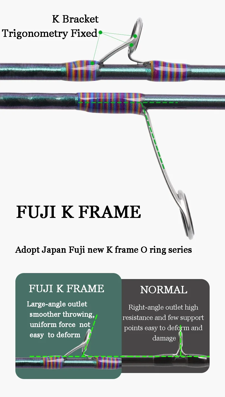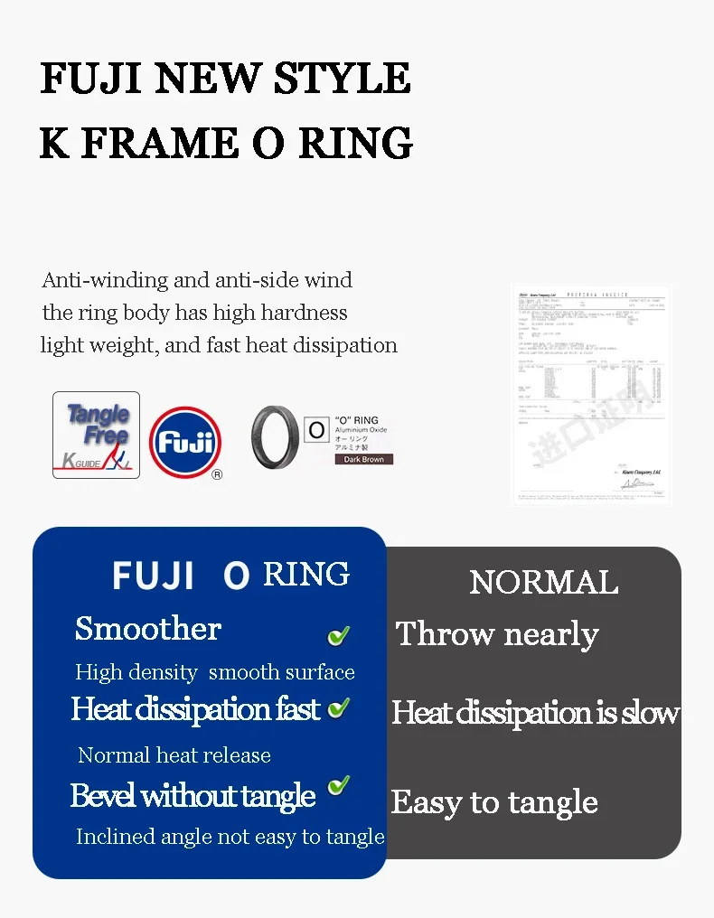 1.Anillo tórico del marco Fuji K, resistencia a la cuerda y al viento cruzado, alta dureza del cuerpo del anillo, no es fácil de deformar y duradero.