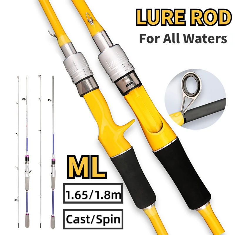 Color: Púrpura/amarilloMango: fundición (con gancho)/hilado (sin gancho)CaracterísticasPuntas sólidas de 2,25mmEl peso del señuelo es de 3G-20G, aplicabilidad más amplia.Cerámica de alta resistenciaLa guía está equipada con cerámica de alta resistencia, que es más suave y duradera que las guías normales.Varilla de carbono de dos seccionesCuerpo de fibra de carbonoFibra de carbono de alta densidad, el proceso de bobinado cruzado de tela de fibra de carbono de alta densidad hace que la caña sea más fuerte y más antitorsión, y no es fácil de romper al pescar peces grandes.Mango EVAHecho de material EVA de alta densidad, se siente mejor y se puede usar durante todo el año en agua dulce.El paquete incluye1 x caña de pescar(No incluye el carrete de pesca ni el soporte para caña)