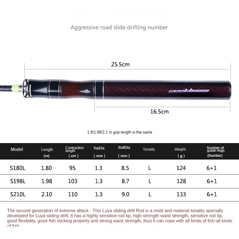 Caña de pescar ultraligera, guía grande, 1,8 m, 1,98 m, 2,1 m, caña de pescar giratoria con mango largo de carbono, potencia L