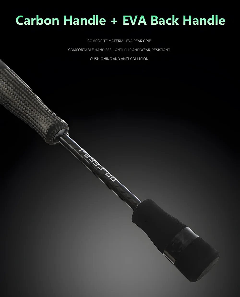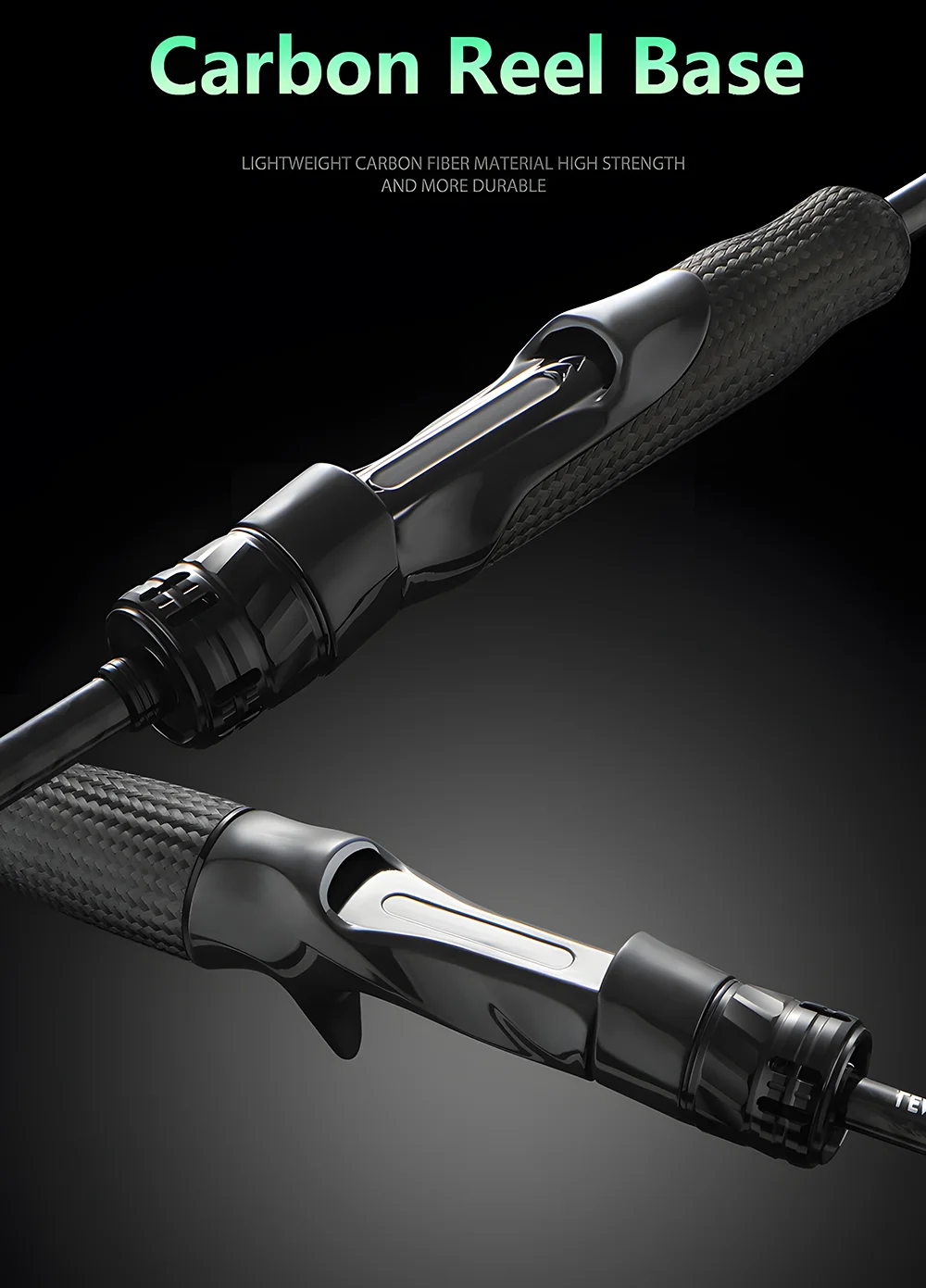 * Material de la base del carrete: fibra de carbono (reduce aún más el peso de la caña de pescar y aumenta la resistencia del asiento del carrete)