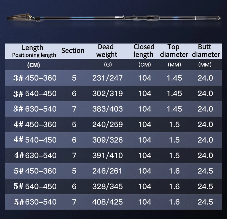 4, la primeraTres opcionesSolo incluye una varilla, las tres últimas opciones incluyen una varilla y un carrete.