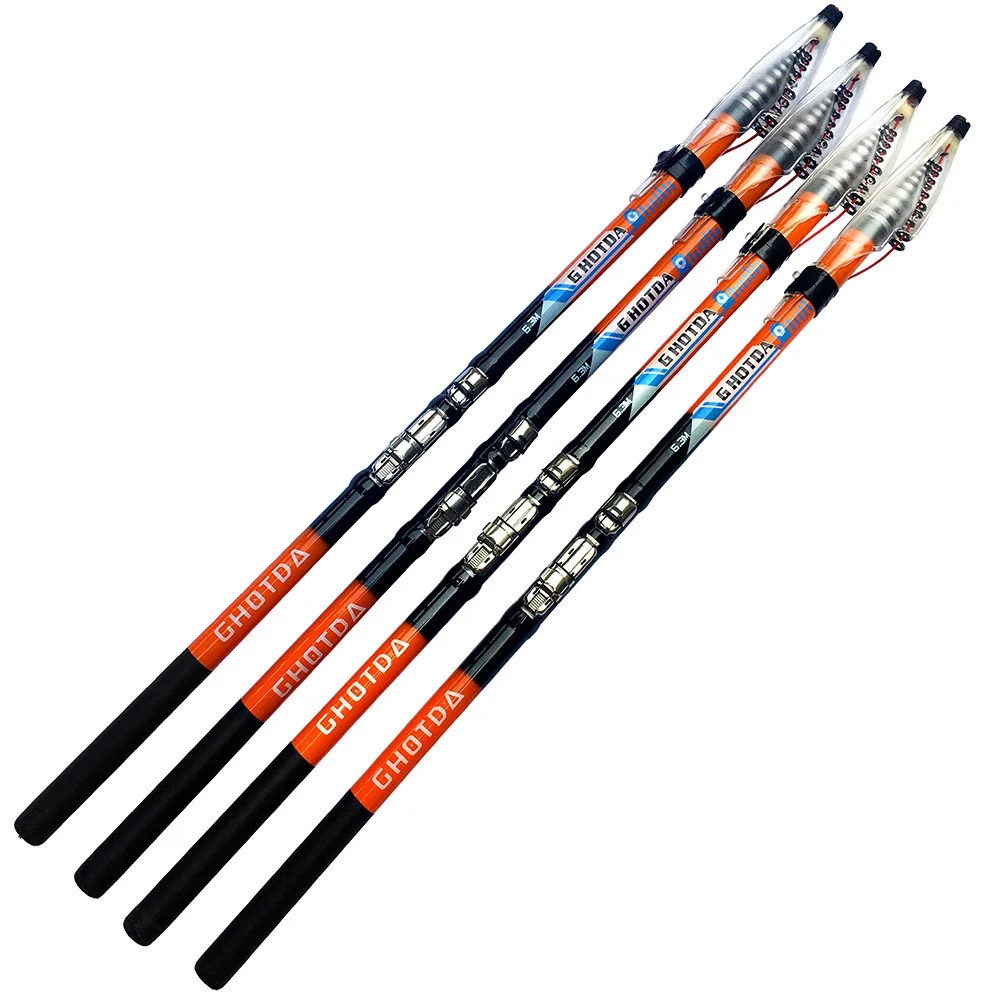 1. Con su diseño giratorio telescópico, esta caña de pescar viene en una gama de tamaños-2,7 M, 3,6 M, 4,5 M, 5,4 M, y 6,3 M, lo que lo hace ideal para su uso en diversos escenarios, incluidos estanques de depósito, océanos y pesca en roca.