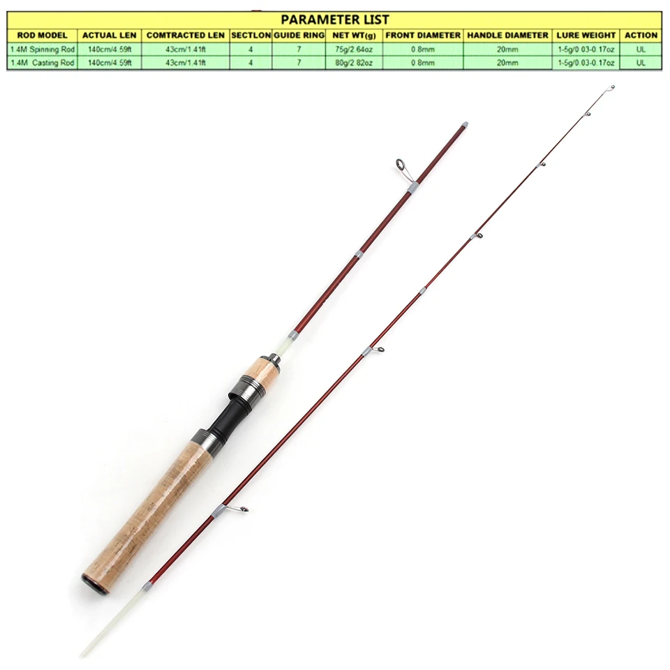 ¡Descubra el mejor compañero de pesca portátil!Nuestra caña de pescar telescópica de cuatro secciones está diseñada para pescadores que valoran la comodidad, el rendimiento y la calidad.Esta caña ultraligera se pliega fácilmente hasta solo 43 cm (16,9 pulgadas) y se extiende hasta 1,4 metros (4,6 pies), cabe fácilmente en una mochila, maleta o guantera para automóvil, ideal para viajes, caminatas, viajes de pesca improvisados o aventuras al aire libre con familiares y amigos.Elaborado con fibra de carbono de alto módulo, presenta una acción lenta UL (ultraligera) sensible, perfecta para pescar peces pequeños y medianos con delicadeza.