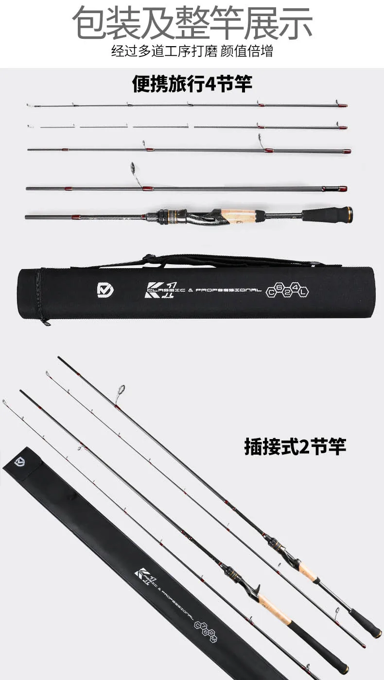 Caña de pescar de viaje KYORIM K1, 1,87 m Japón FUJI O guía carrete asiento x-cross carbono Spin Cast señuelo caña de pescar 4 SECCIÓN