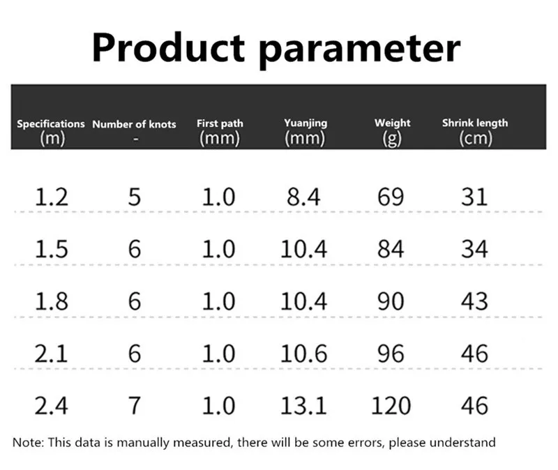 Tamaño: 1,2/1,5/1,8/2,1/2,4 m