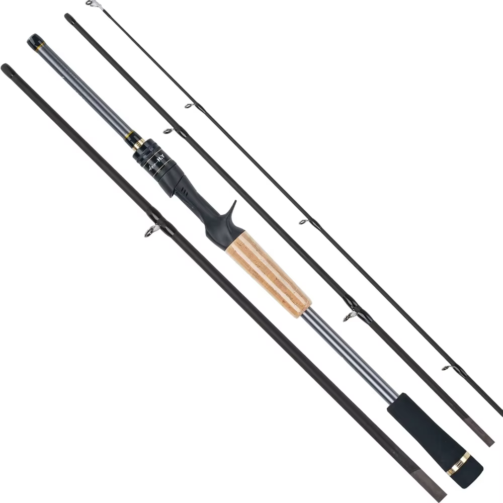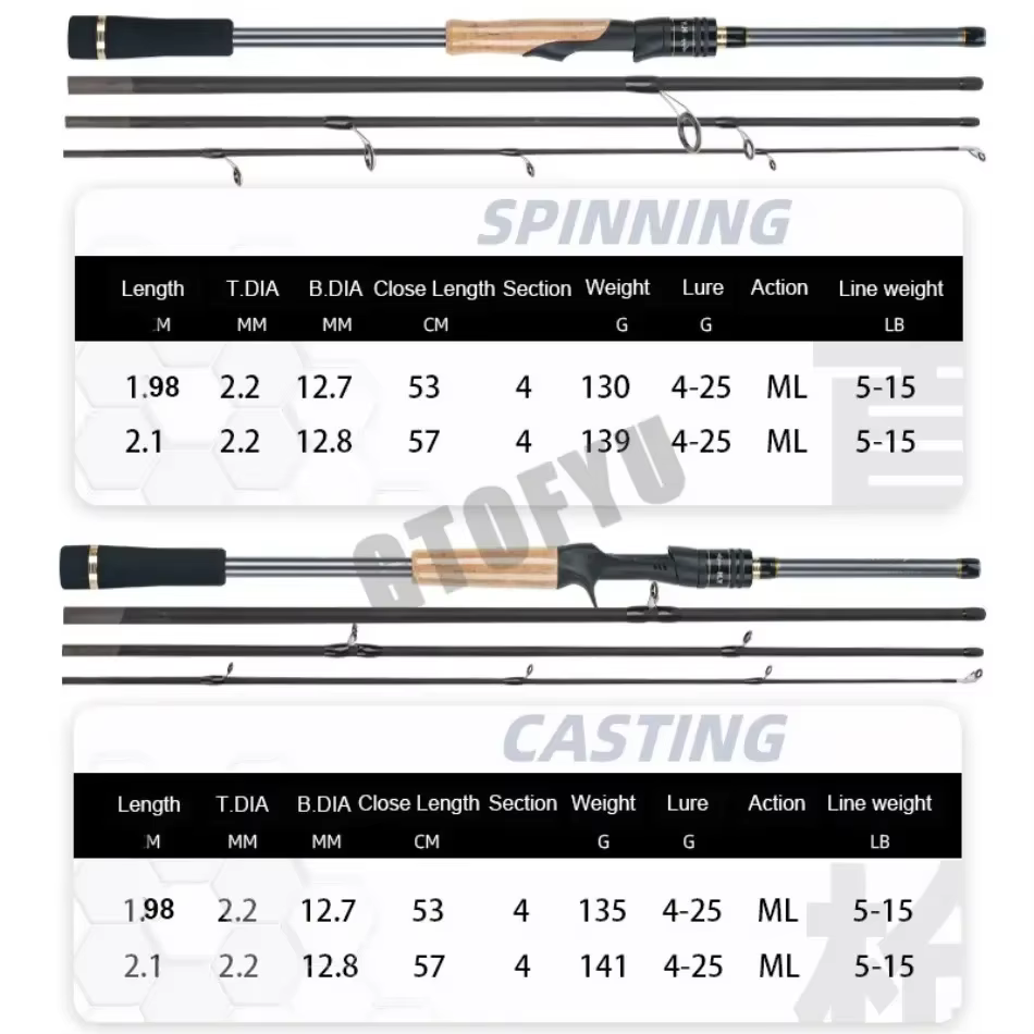 Caña de pescar de viaje con señuelo de 1,98 m y 2,1 m, 4 secciones, 100% de carbono alto, 4-25g, caña de fundición giratoria portátil ultracorta