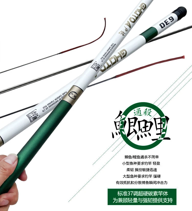 Caña de pescar telescópica de viaje 3,6 M/4,5 M/5,4 M/6,3 M/7,2 M de alto carbono portátil Super duro Stream Pole Fly CarpPresentamos nuestra caña de pescar telescópica de fibra de carbono: la herramienta de pesca definitiva para pescadores experimentados y principiantes por igual. Con una gama de tamaños disponibles de 3,6 M a 7,2 M, esta caña es perfecta para la pesca de carpa, pesca en corriente y Pesca de viaje.
