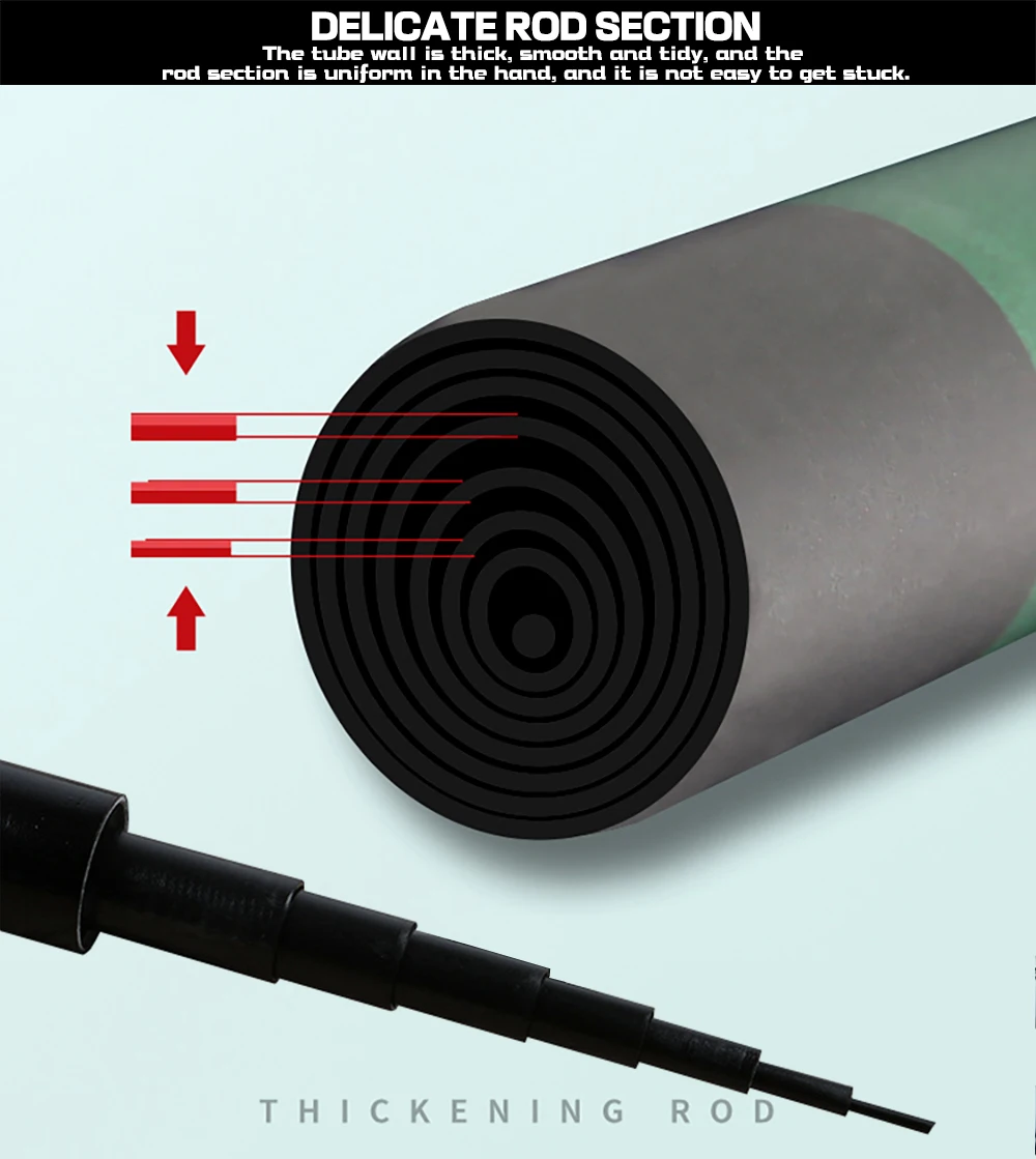 Elaboradas con fibra de carbono cruzada de alta calidad, nuestras cañas de pescar están diseñadas para ser ligeras pero increíblemente fuertes. La rotación apretada de 360 grados de la punta de la varilla garantiza que tenga un control completo sobre la dirección de su yeso, y el diseño reforzado significa que puede manejar incluso los tirones más duros.