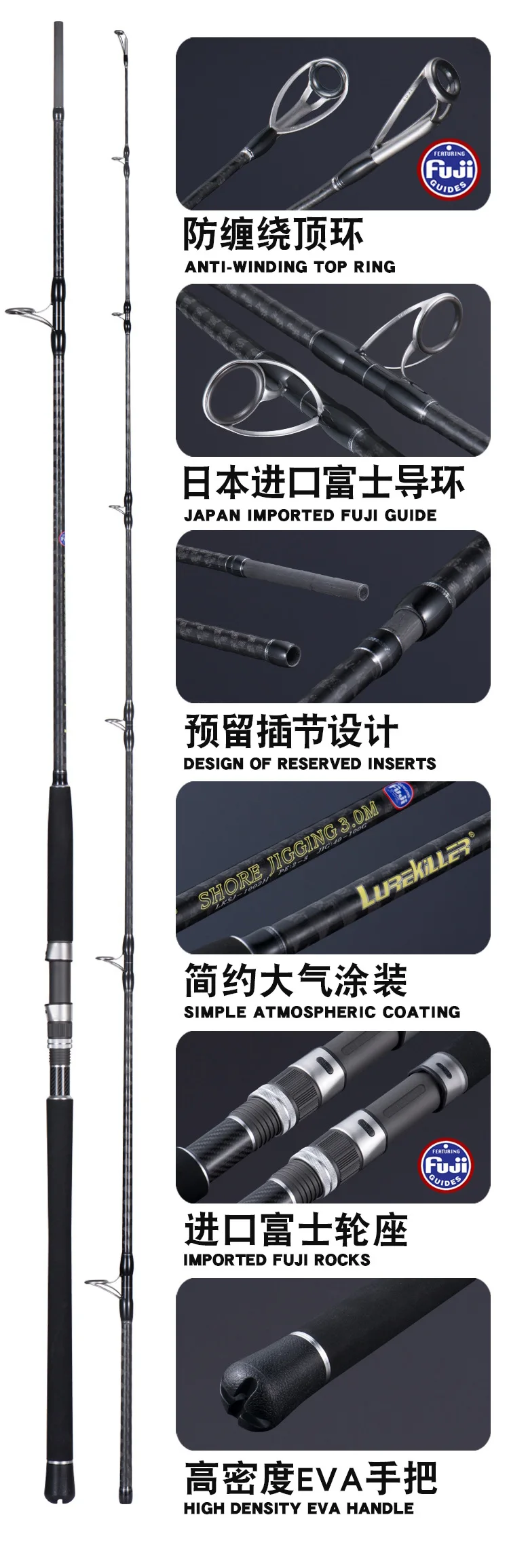 Caña de Pescar ZZ19 de 2.7m para Pesca de Superficie en Aguas Profundas, para Jigging Lento, Peso del Plomo 40-100g