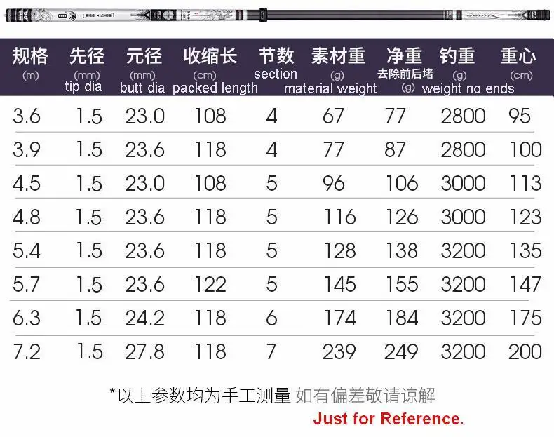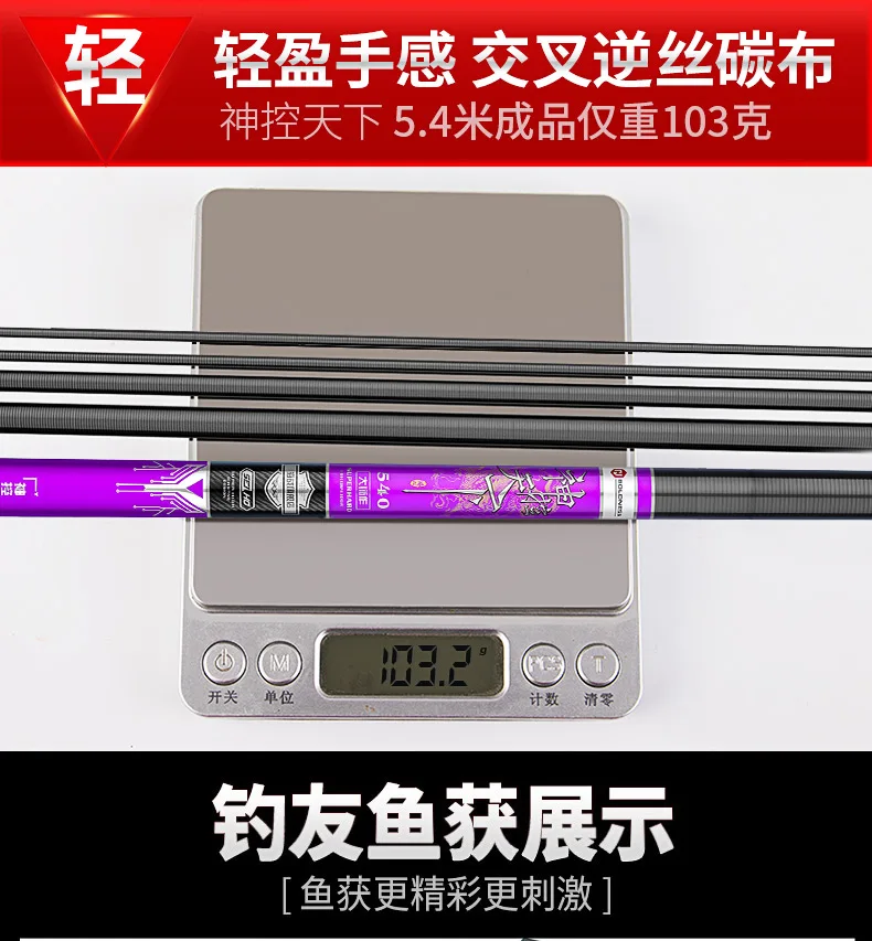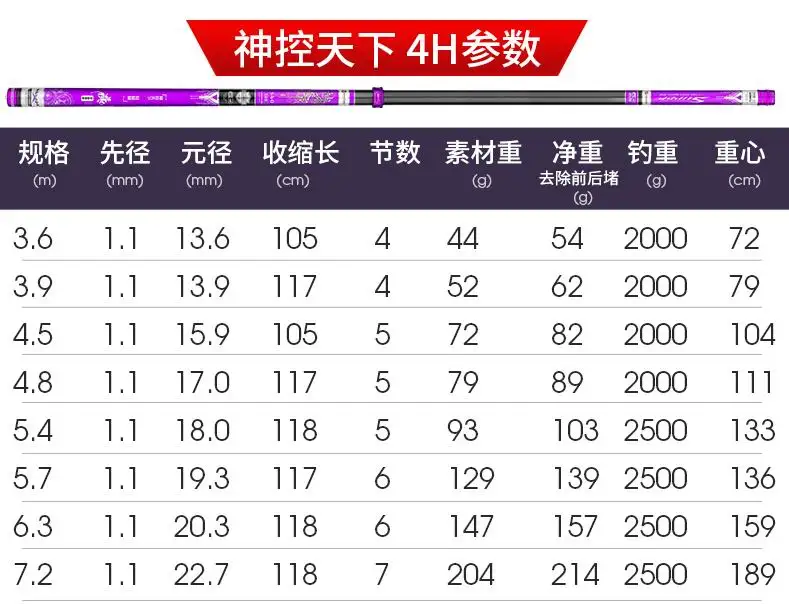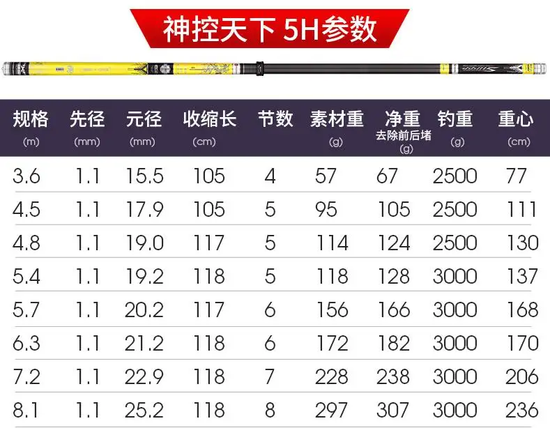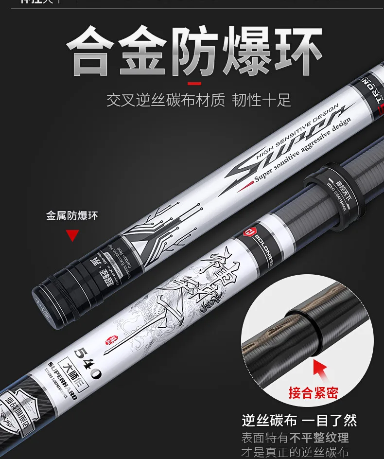 Caña de pescar ZZ67 HZ Water Detective, 4H, 5H, 6H, superligera, carbono, 3,6 m, 3,9 m, 4,5 m, 4,8 m, 5,4 m, 5,7 m, 6,3 m, 7,2 m, 8,1 m
