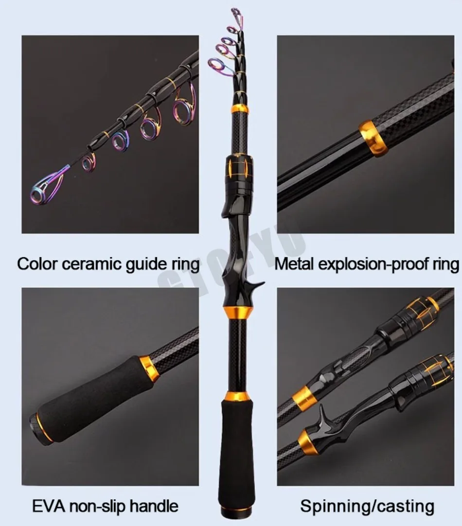 Descripción• Portátil y retráctil: esta caña de pescar es fácil de transportar y se puede retraer a un tamaño compacto, lo que la hace perfecta para viajar o pescar en movimiento.• Caña de pescar de carbono hacia arriba: El diseño de carbono hacia arriba de esta caña de pescar garantiza la máxima durabilidad y resistencia, lo que le permite atrapar peces más grandes con facilidad.• Base de dos ruedas: la base de dos ruedas de esta caña de pescar proporciona una plataforma estable y equilibrada para lanzar, lo que le permite realizar lanzamientos precisos en todo momento.• Áreas multiacuáticas aplicables: esta caña de pescar es adecuada para su uso en una variedad de entornos acuáticos, incluidos lagos, ríos y océanos, lo que la convierte en una opción versátil y práctica para cualquier pescador.Caña de señuelo telescópica que vibra la sección corta caña de señuelo multifuncional caña de pescar portátil de carbonoTamaño: 1,5 m, 1,8 m, 2,1 mMaterial: alto carbonoDescripción del producto:1 asiento de rueda en espiral, carrete de pesca estable y de larga duración que no se afloja, y es más suave para luchar contra los peces grandes2 . Agarre EVA de alta elasticidad, cómodo y antideslizante, fácil de limpiar, no se cansa al sostener la varilla durante mucho tiempo