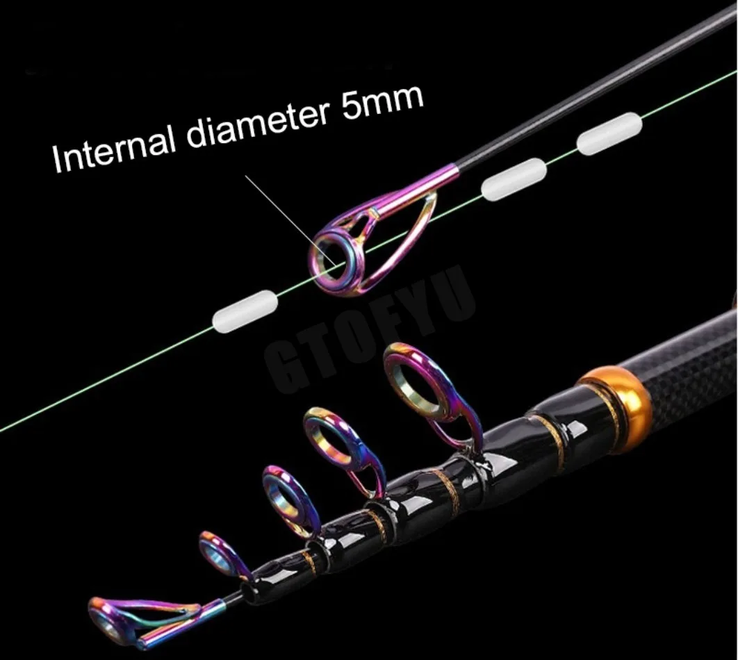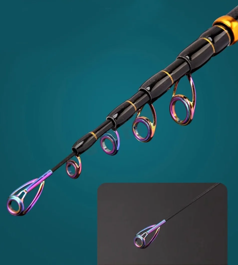 3 . Anillo de guía firme, soporte de pies fijos, paso de línea suave para evitar daños en la línea de pesca