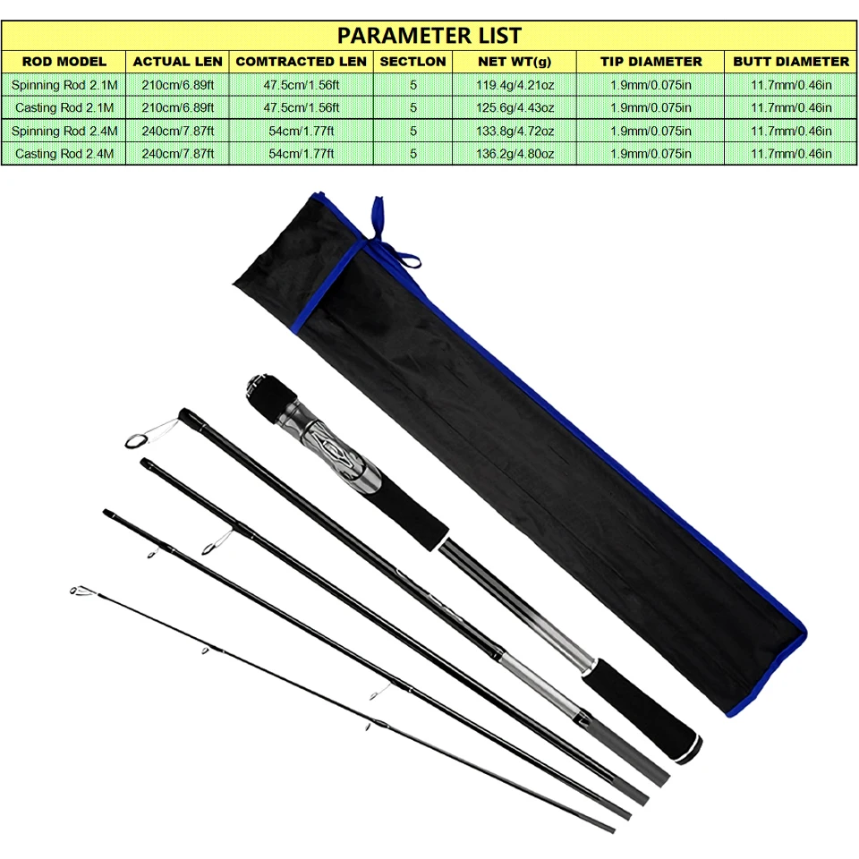 Portabilidad incomparable: el revolucionario diseño de cinco secciones se pliega hasta alcanzar solo 47,5 cm (modelo de 2,1 m) o 54 cm (modelo de 2,4 m).Esta longitud plegada compacta la convierte en la barra de viaje perfecta, que cabe fácilmente en mochilas, maletas, guanteras de automóviles o incluso grandes bolsillos para equipo.