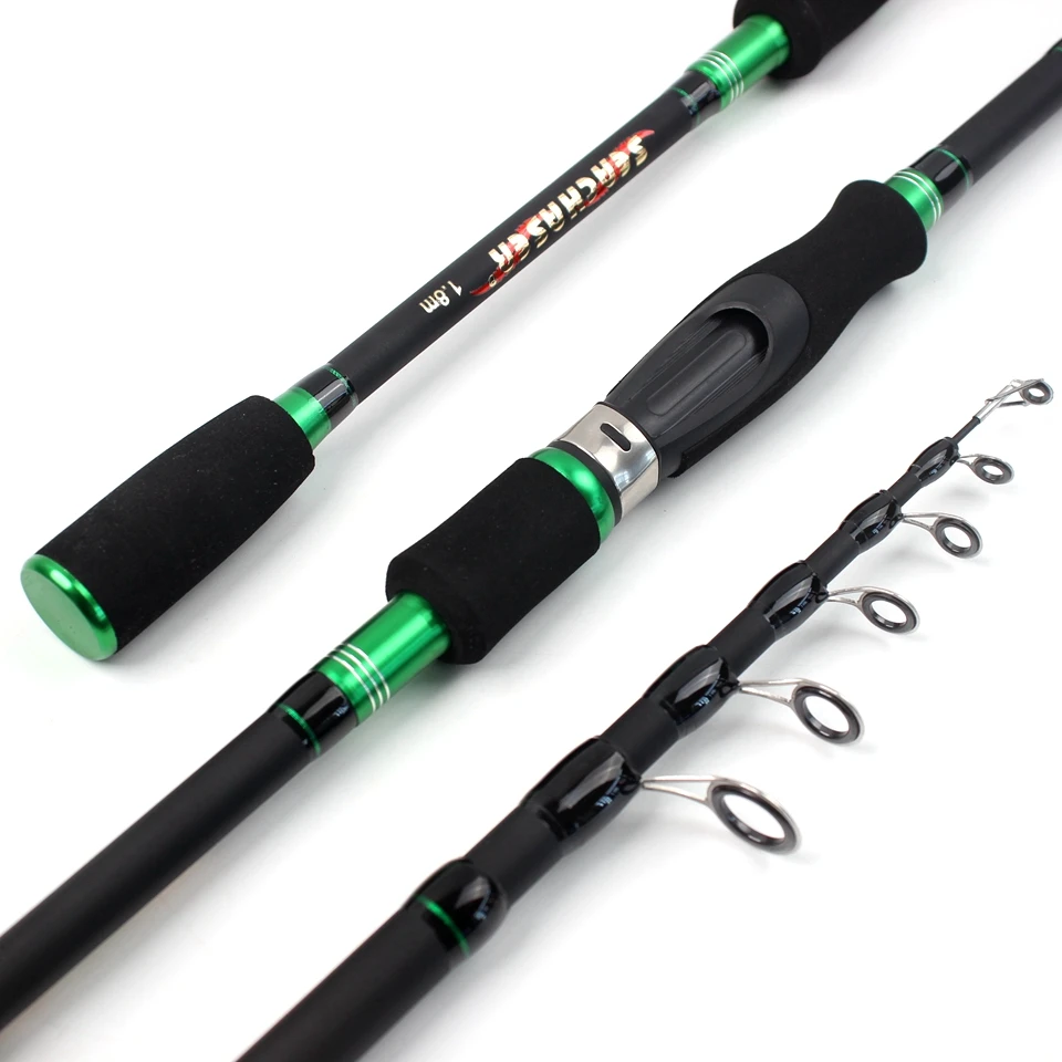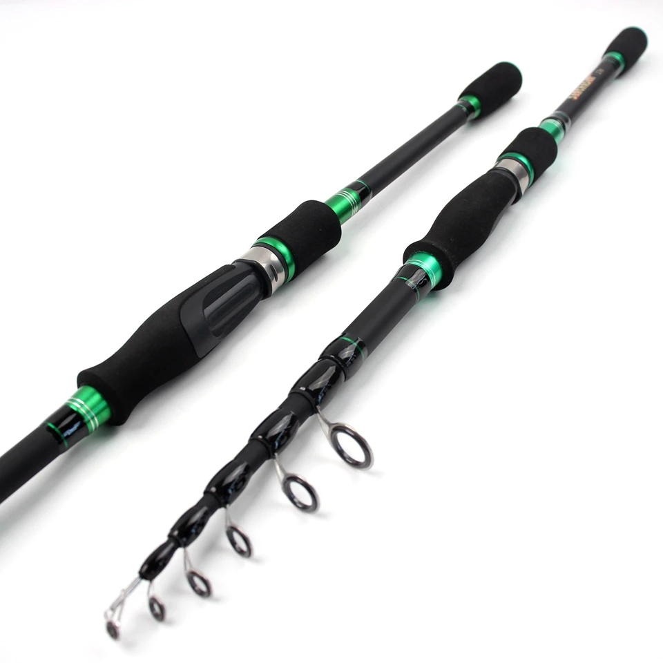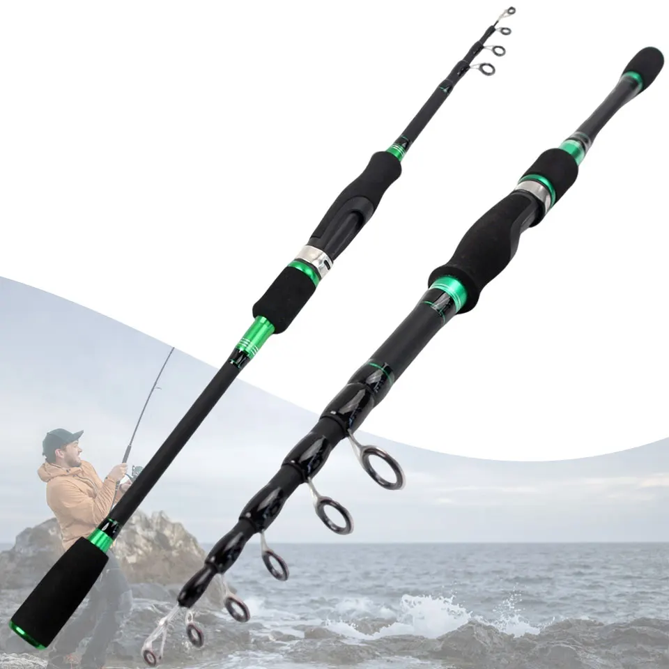 Caña de señuelo giratoria telescópica, 1,8-2,7 M de potencia, fibra de carbono, agarre EVA, ultracorto, portátil para pesca en agua dulce y salada