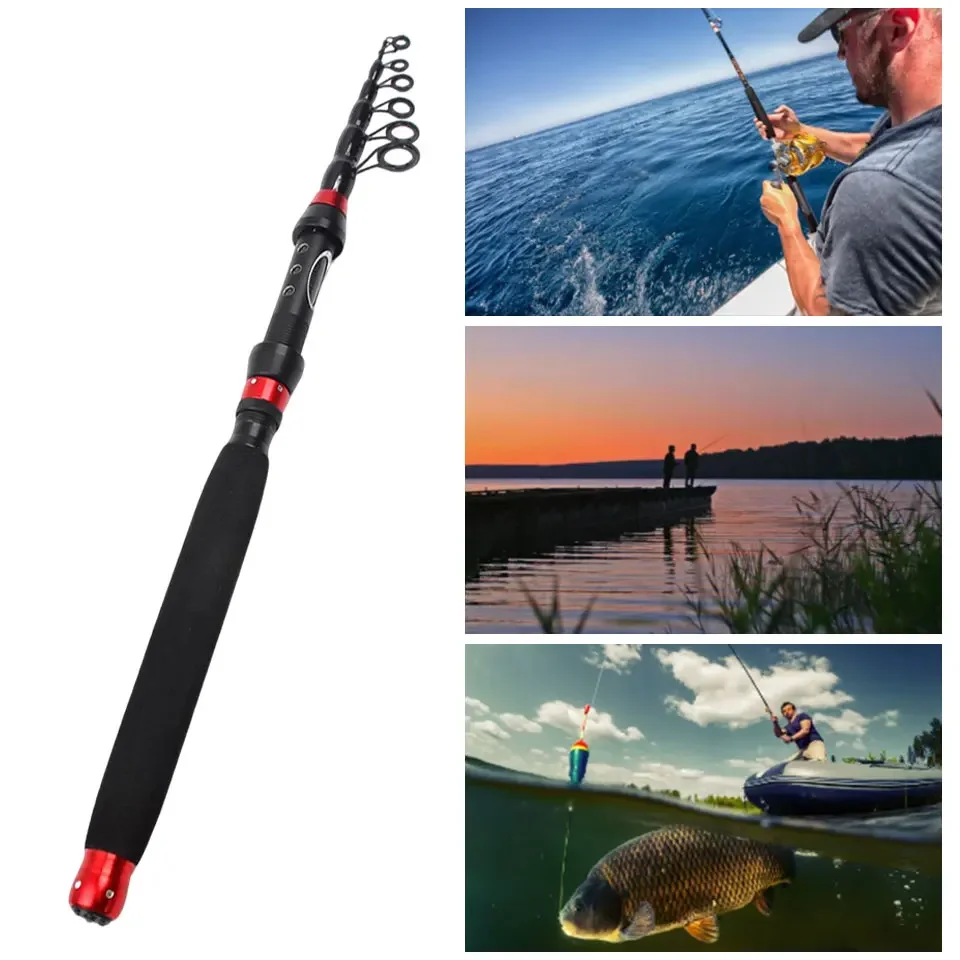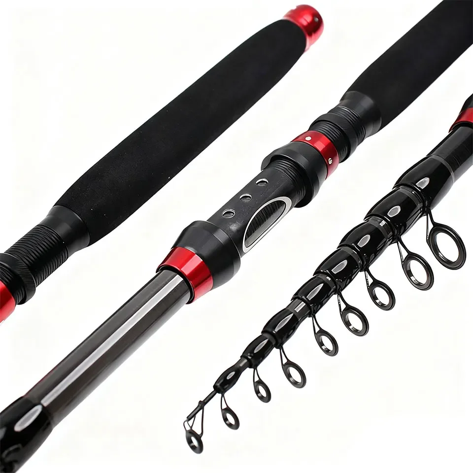 Caña de señuelo telescópica de carbono, compacta, portátil, fundida precisa con láser, agua dulce y salada, universal, pesca en movimiento