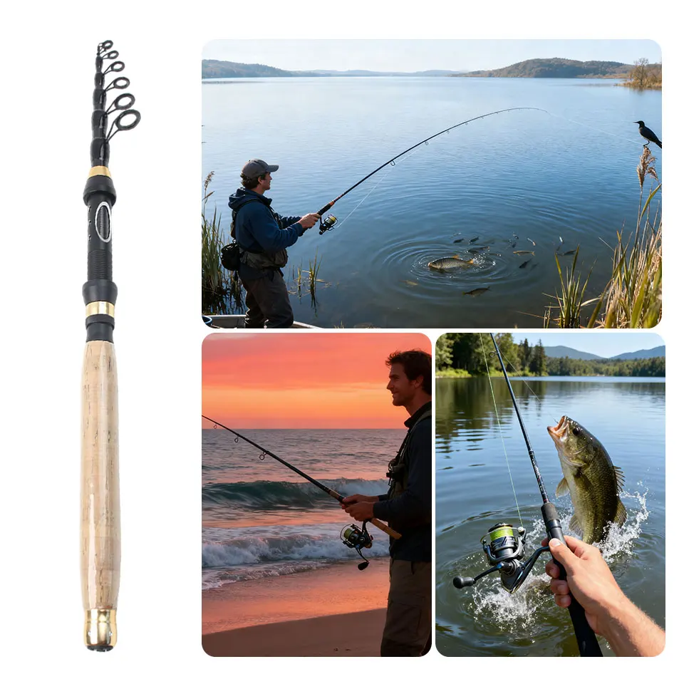 Caña de señuelo telescópica: práctico material de carbono portátil, universal para agua dulce, agua salada, caña de pescar de todas las aguas