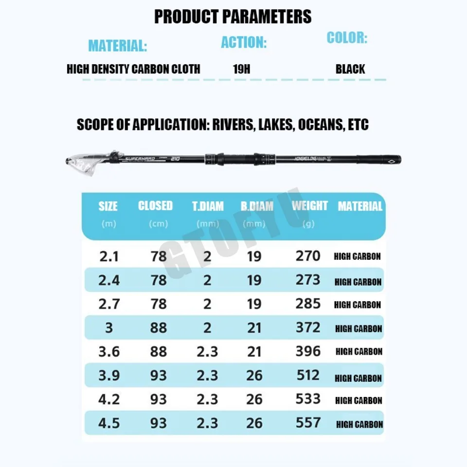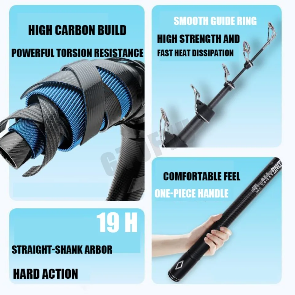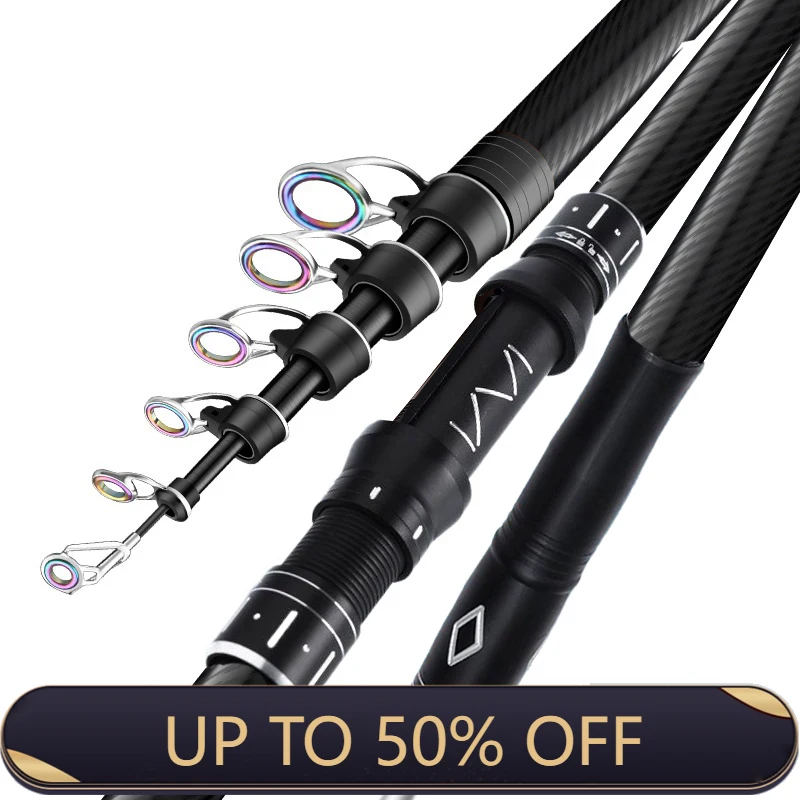 Caña de Surf telescópica de 2,1-4,5 M, caña de pescar giratoria para viajes, agua salada, agua dulce, lanzamiento de energía, Surfcasting, caña de Baitcasting de carbono