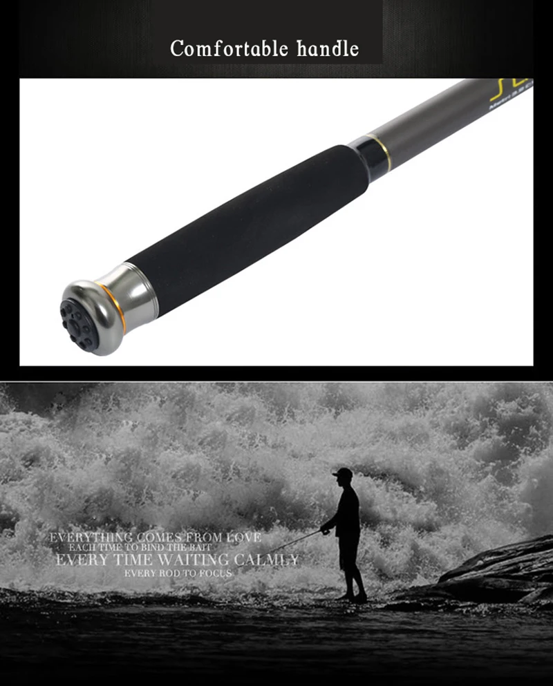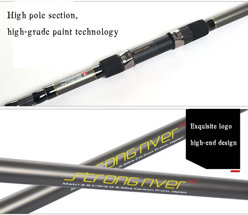 Longitud de la varilla: 2,4/2.7/3.0/3.3/3.6/3.9/4.2/4.5/5.4M Material: fibra pura de alto carbonoGuía superior dentro del diámetro.:6,8 mmLongitud del asiento del carrete hasta el extremo de la cubierta: unos 45 cmpeso del señuelo:2,4 m ----10-150 g2,7 m/3,0 m/3,3 m --- - 20--180 g3,6 m/3,9 m---30---230 g4,2 m/4,5 m/5,4 m---40-280 gArrastre de la piel:2,4 M --- 3 kg2,7/3,0 M ----4 kg3,3/3,6/3,9/4,2/4.5/5,4 M --- 5,0 kgEmbalaje: tubería XPG resistente