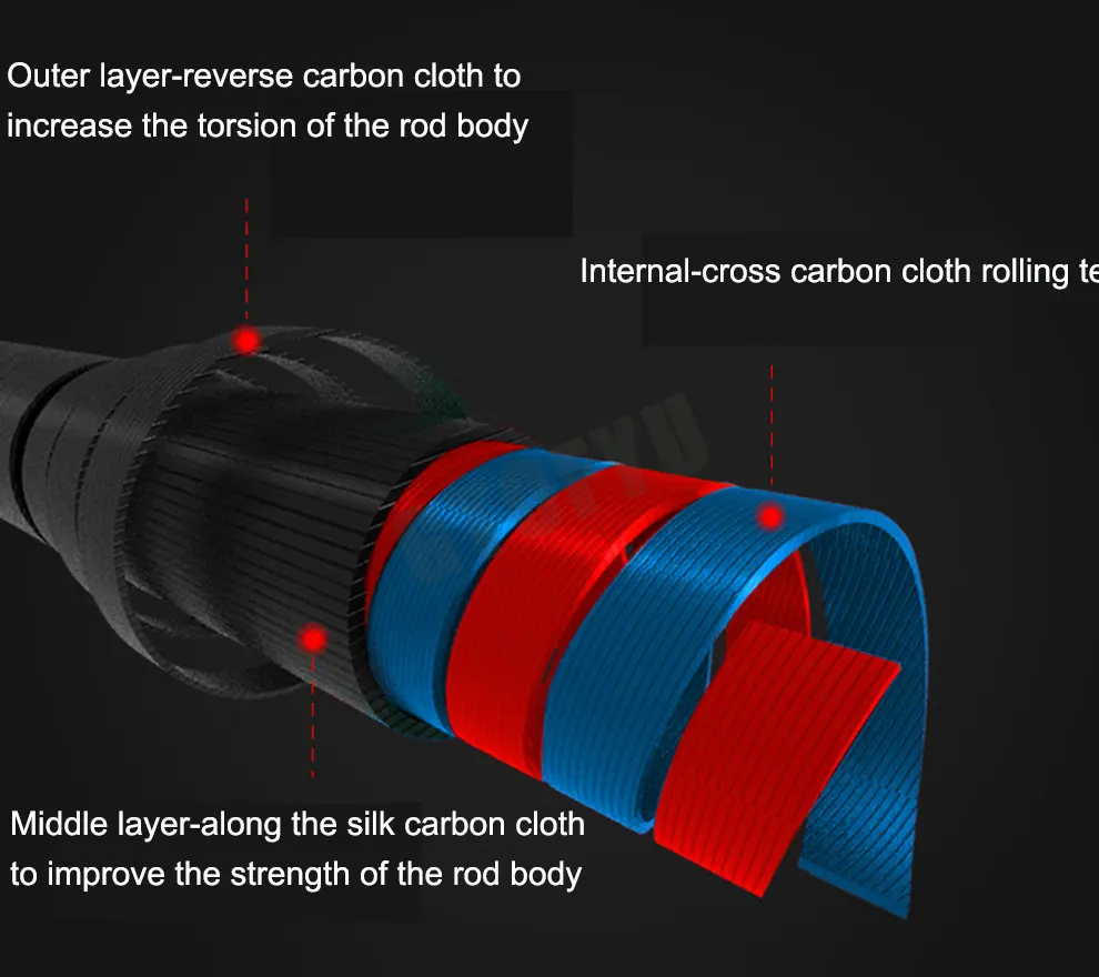 1. Esta caña de pescar está hecha de fibra de carbono, resistente y duradera.