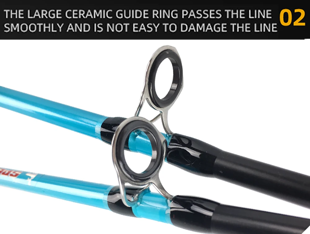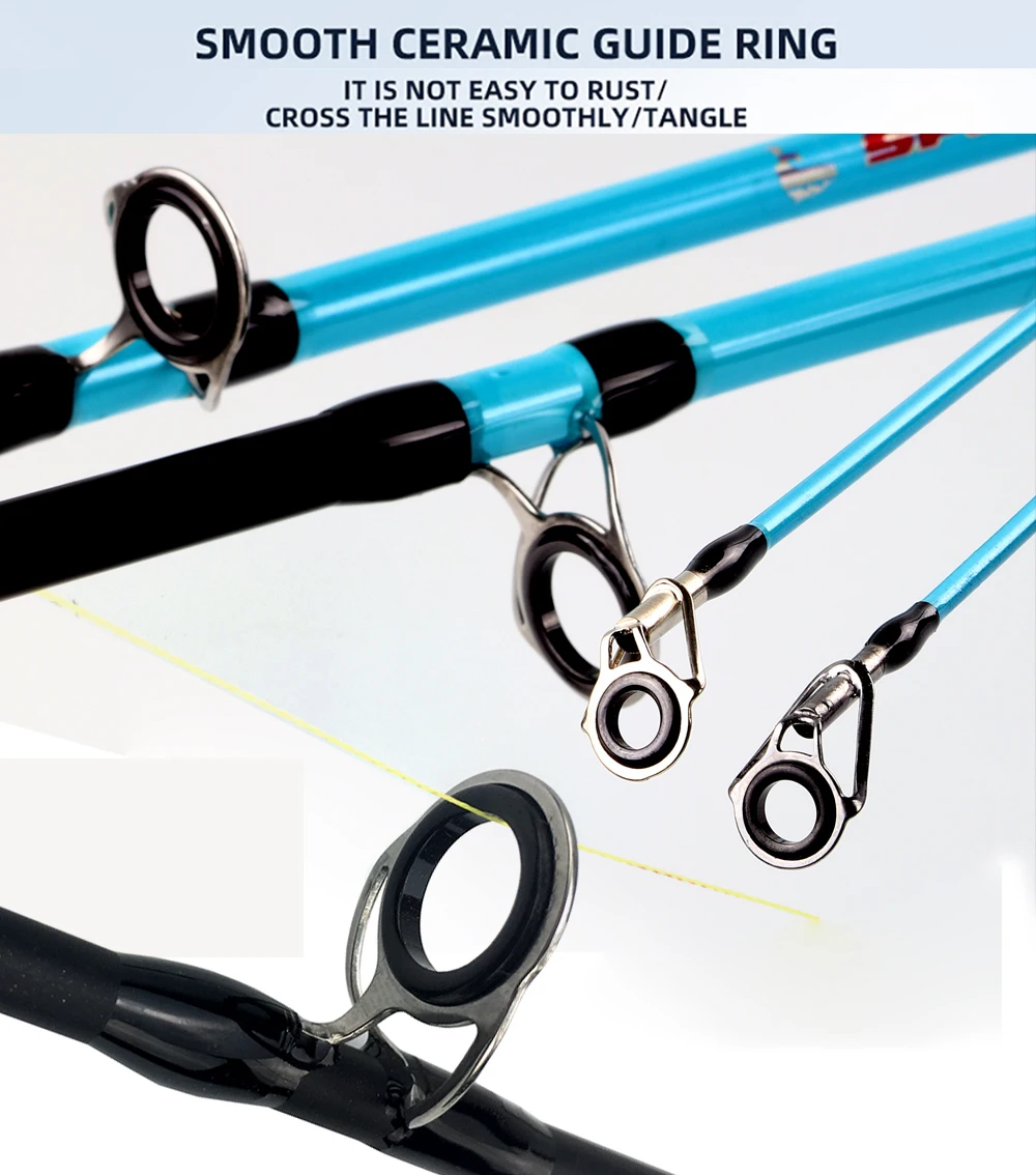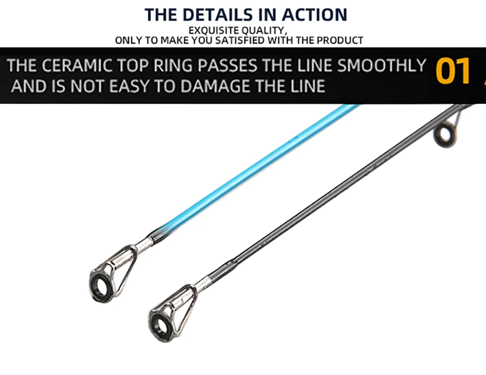 PARÁMETROLongitud del modelo: 1,5 M/1,8 MLongitud cerrada: 79 / 89cmSecciones: 2Potencia: MMaterial: fibra de carbonoMango: fundiciónPeso de Línea: 5 -15lbPeso del señuelo: 3G-21gMango: fundición (con gancho)/hilado (sin gancho)Color: Blanco/azul (opcional)CaracterísticasPunta de varilla gruesa