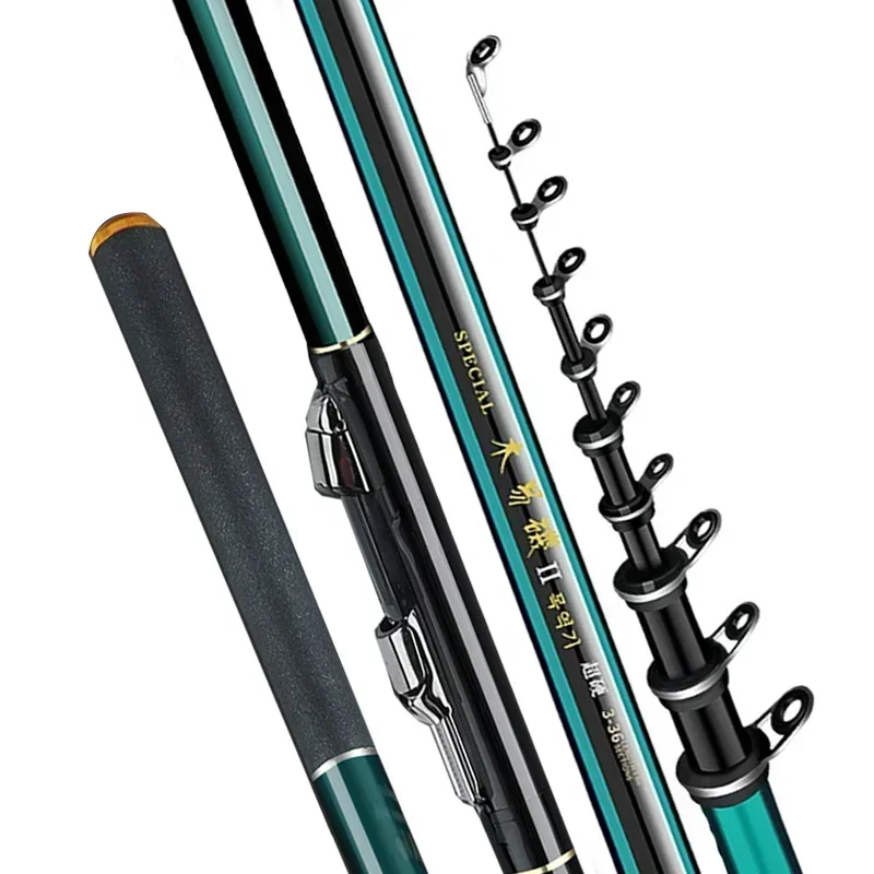 Cañas de pescar de 2,7 m-7,2 m, caña de pescar telescópica ultraligera de carbono de 60T alto para Surfcasting, caña de pescar giratoria en roca, pesca en el mar en la costa, agua dulce