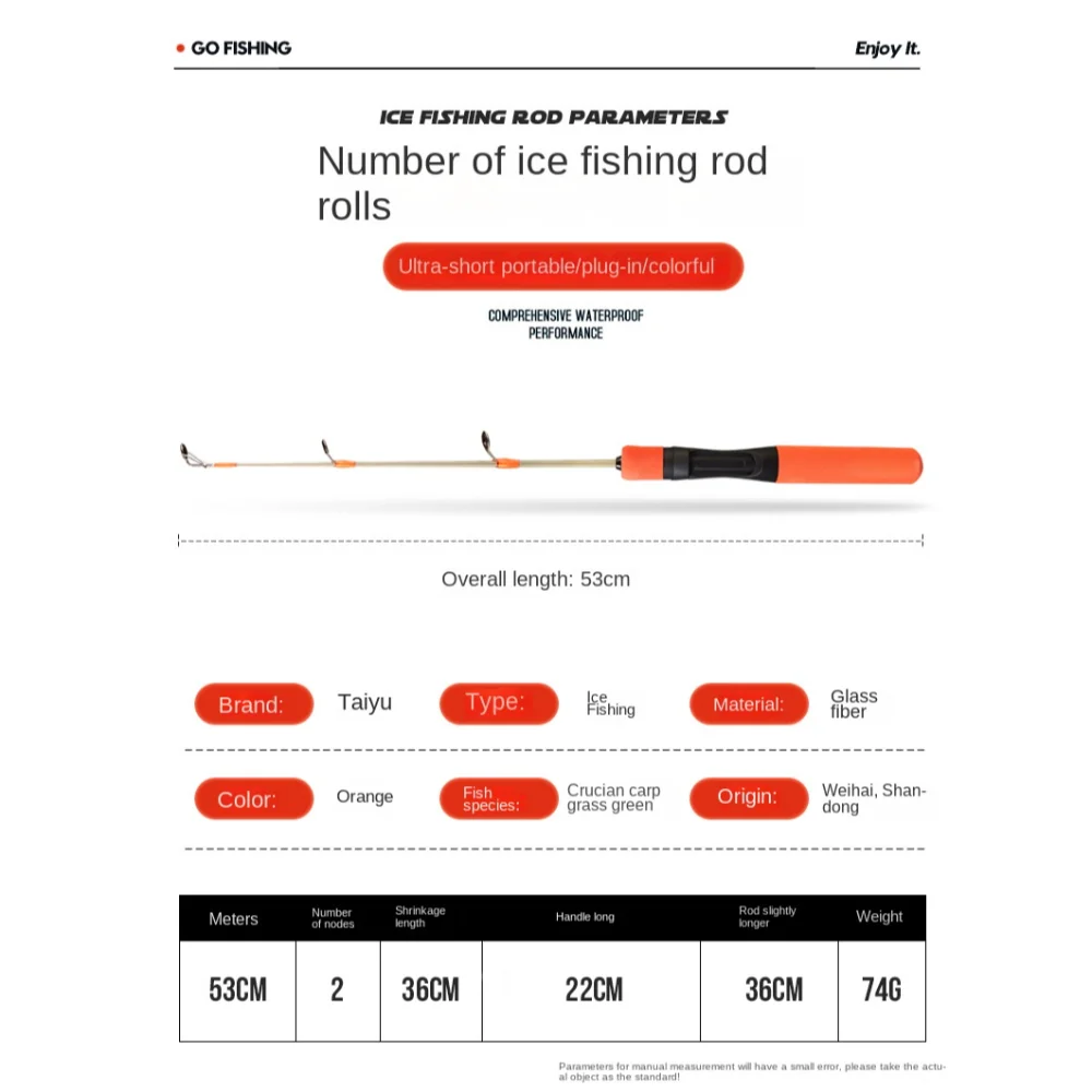 Category:Ice Fishing Rod It is portable, compact, lightweighted and easy to use.
