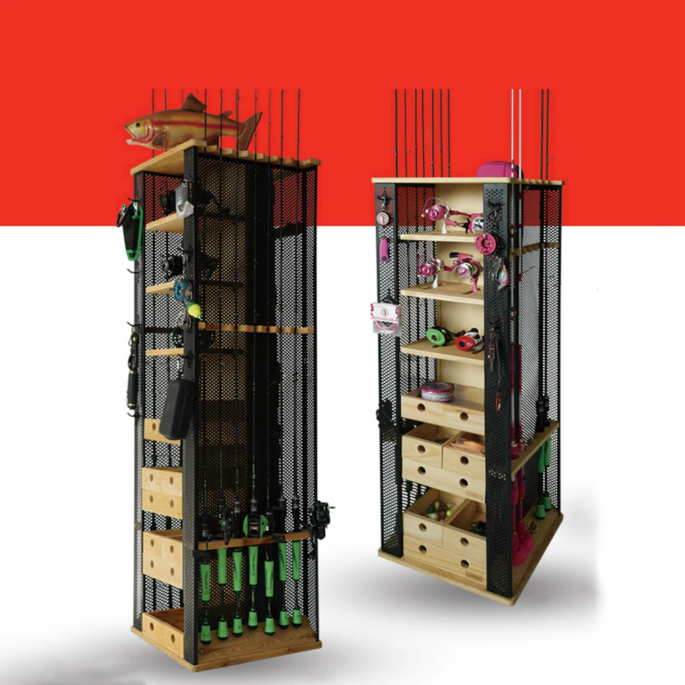 Cañas de pescar giratorias de 360 grados, estante de exhibición, carrete de pesca de mar, accesorios de señuelo, soporte de almacenamiento, organizador de poste de pesca