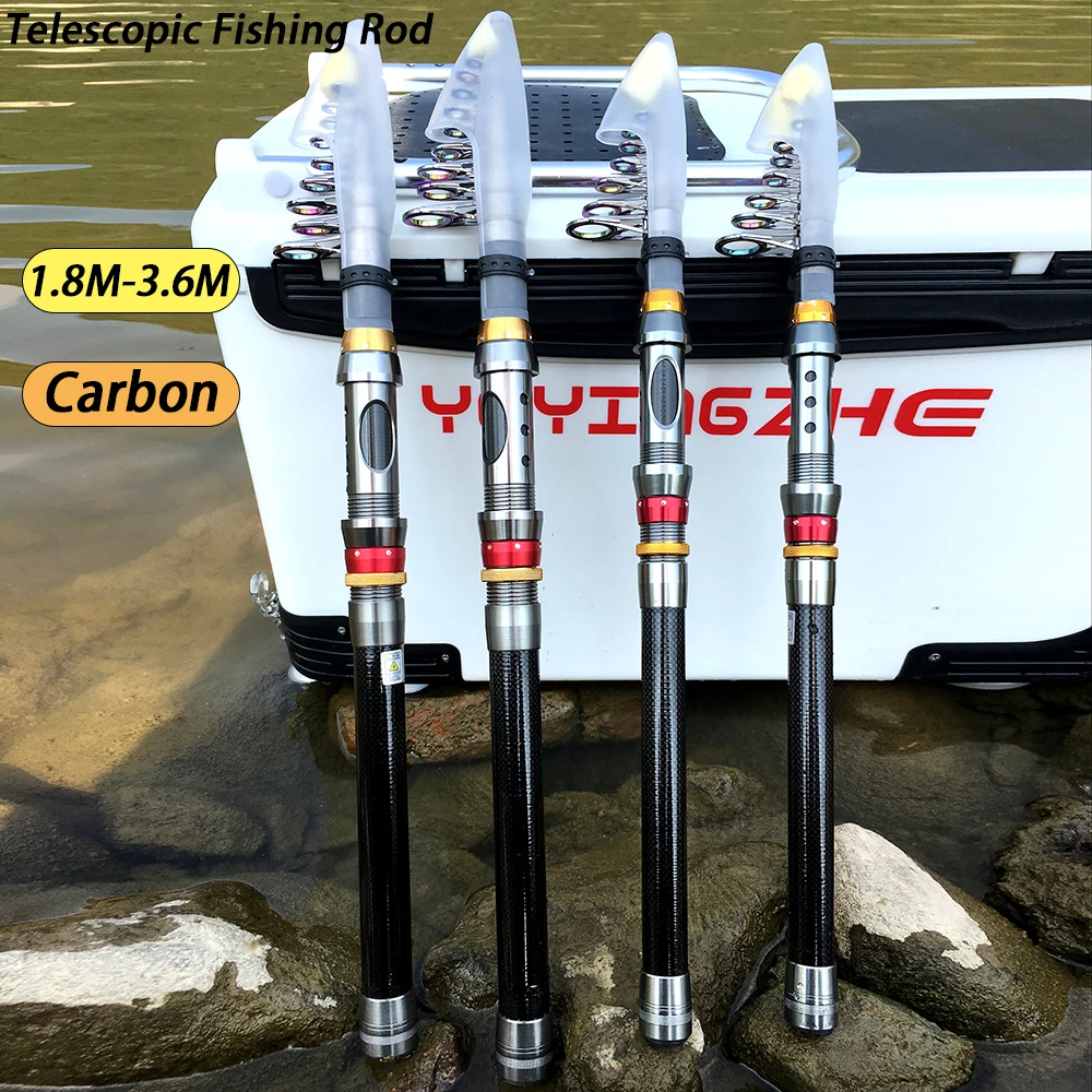 Cañas de pescar giratorias, accesorio telescópico de carbono para mar, ultraligero, señuelo de viaje, asiento de carrete de Metal, poste duradero, 1,8-3,6 M