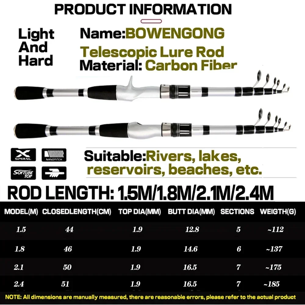 Cañas de pescar giratorias para Baitcasting, caña de pescar ligera de fibra de carbono de 1,5-2,4 m con cebo de línea, acción ML, 5-18g, pesca en barco de pulpo y calamar