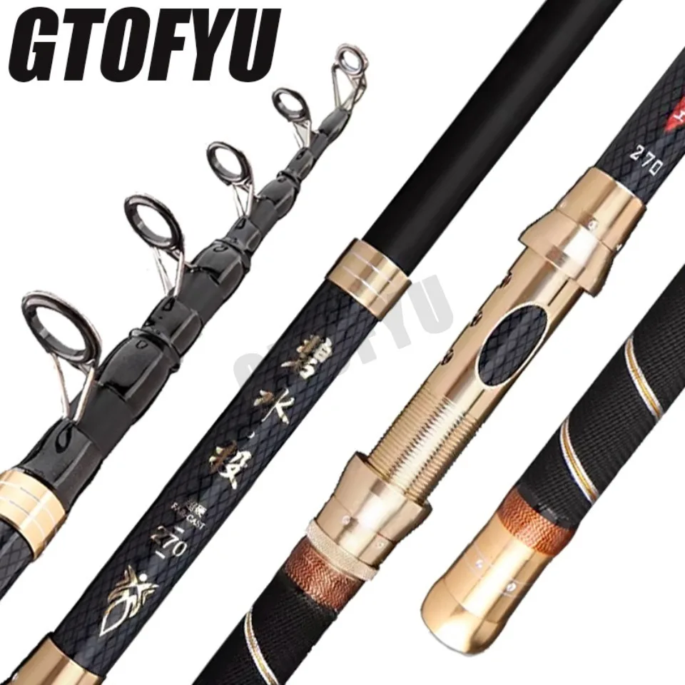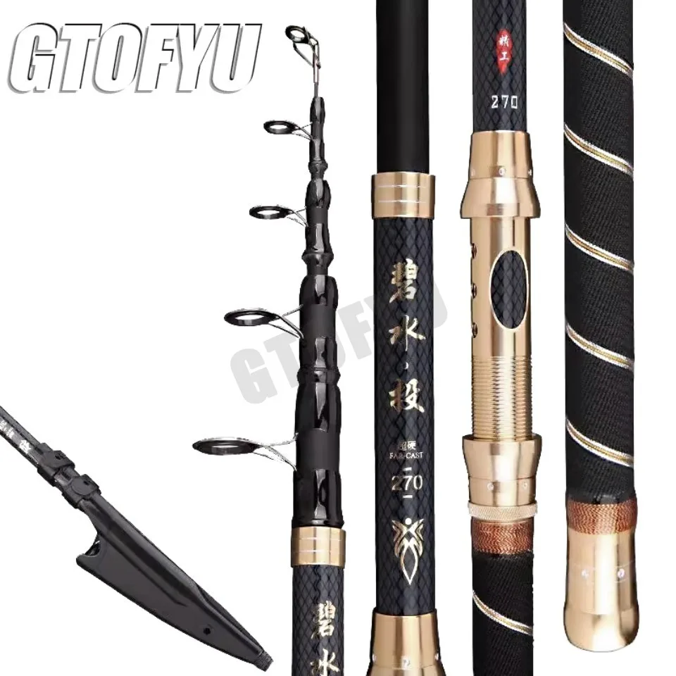 Cañas de pescar giratorias telescópicas superduras de 2,4 M, 2,7 M, 3,6 M, caña de mar ultraligera de tiro largo, caña de lanzamiento de alta calidad de largo alcance