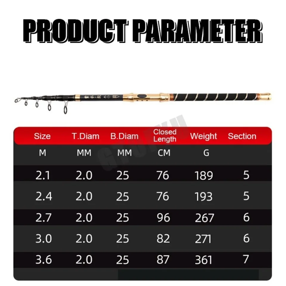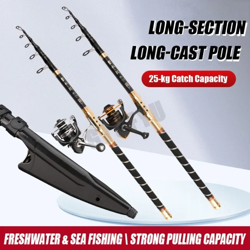 Cañas de pescar giratorias telescópicas superduras de 2,4 M, 2,7 M, 3,6 M, caña de mar ultraligera de tiro largo, caña de lanzamiento de alta calidad de largo alcance