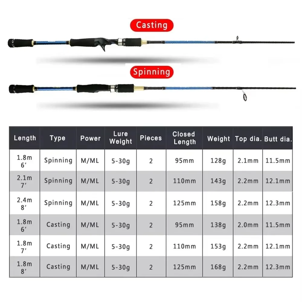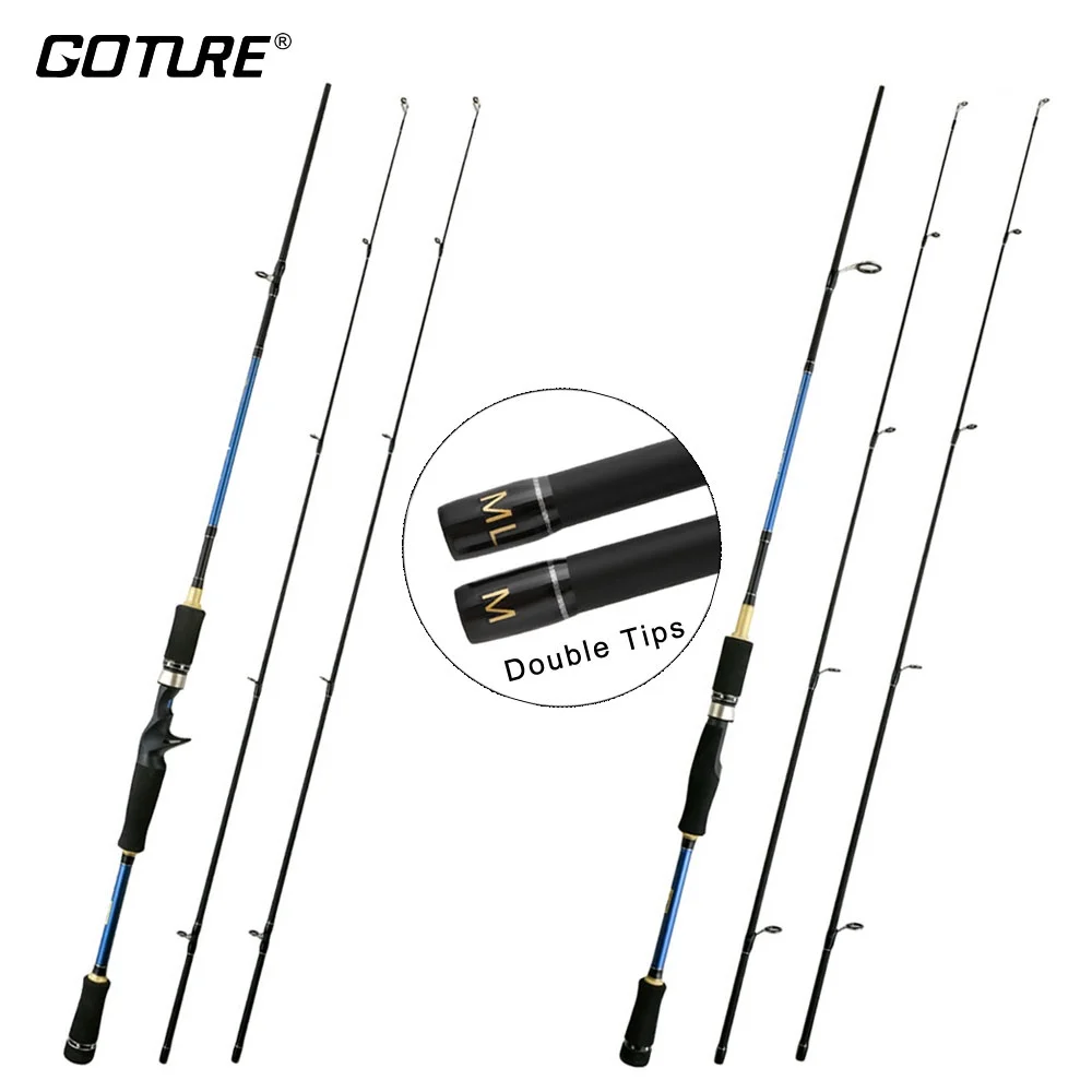 Goture M + ML caña de pescar de fibra de carbono de fundición de doble punta giratoria, caña de señuelo de 1,8 m, 2,1 m y 2,4 m para agua dulce salada