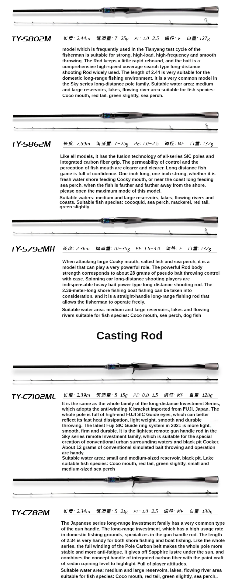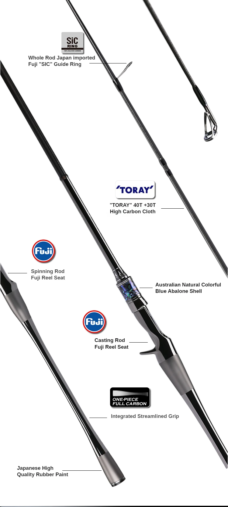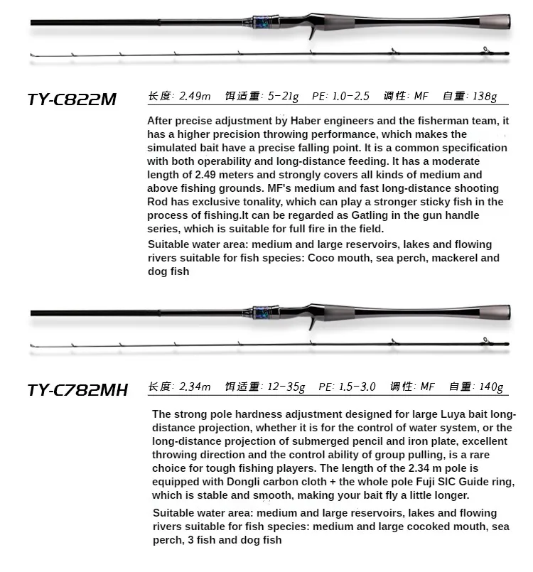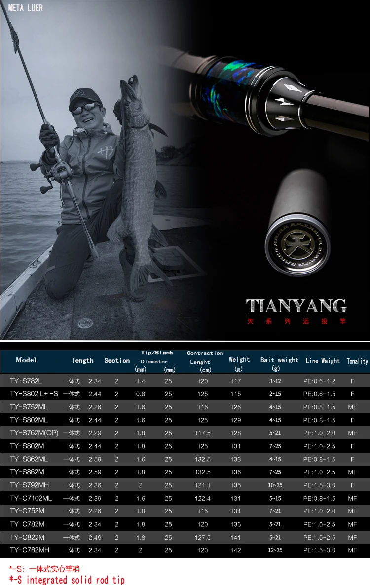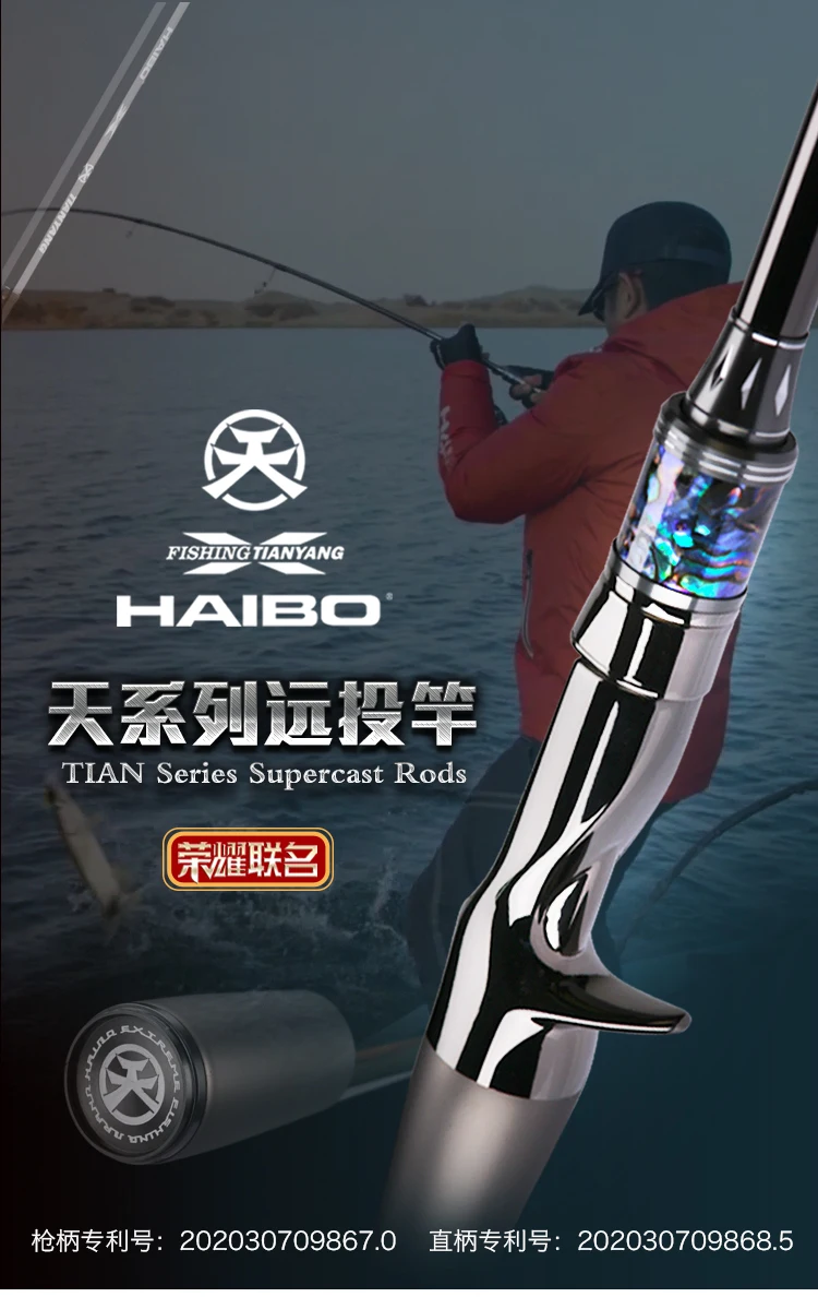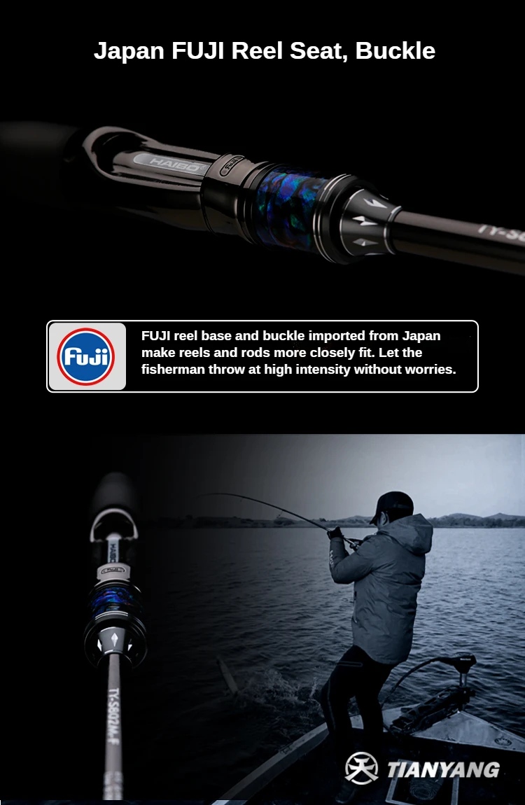HAIBO TIANGYANG Tian Series Cañas de pescar Supercast 2 Secciones Varilla de fundición giratoria Anillo Fuji SIC Una pieza Totalmente de carbono TORAY Ligero