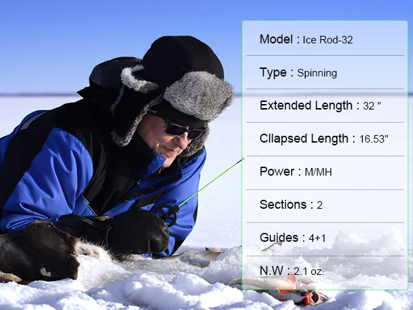 Cañas de pescar en hielo de invierno Goture, caña giratoria de 32 ", 2 secciones, M + MH, 2 puntas, mango de corcho, caña de hielo, pesca de carpa ultraligera