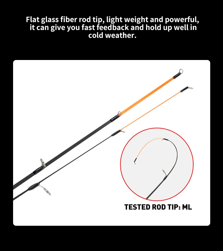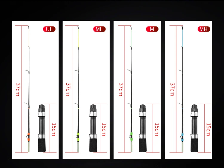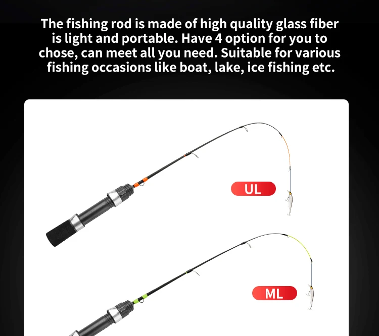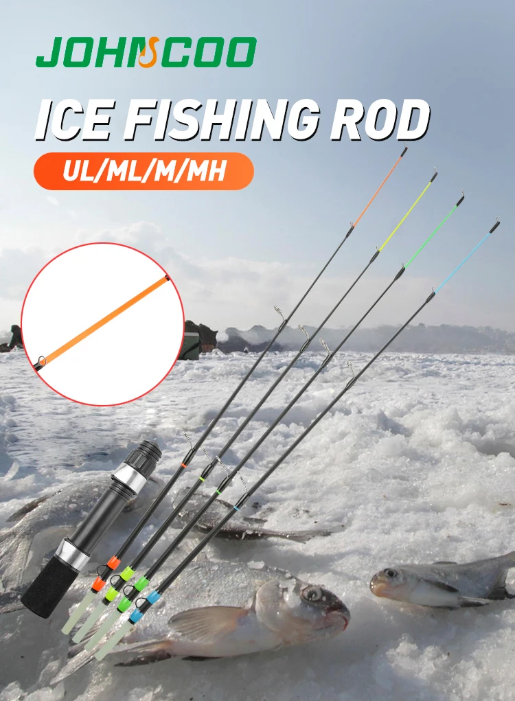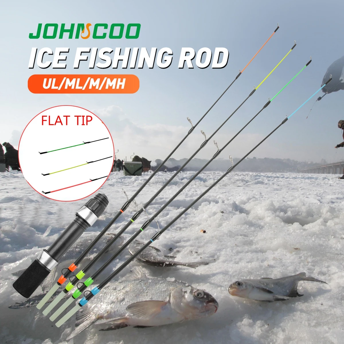 Cañas de pescar en hielo de invierno Johncoo de 50cm, caña giratoria de punta plana de fibra de vidrio, caña de pescar de invierno ultraligera