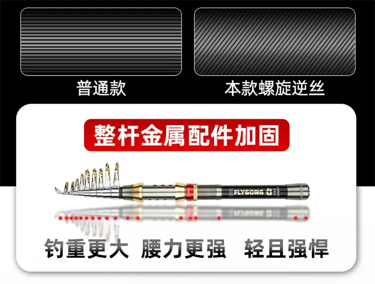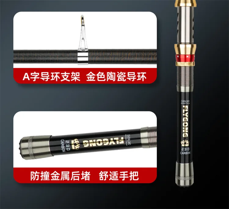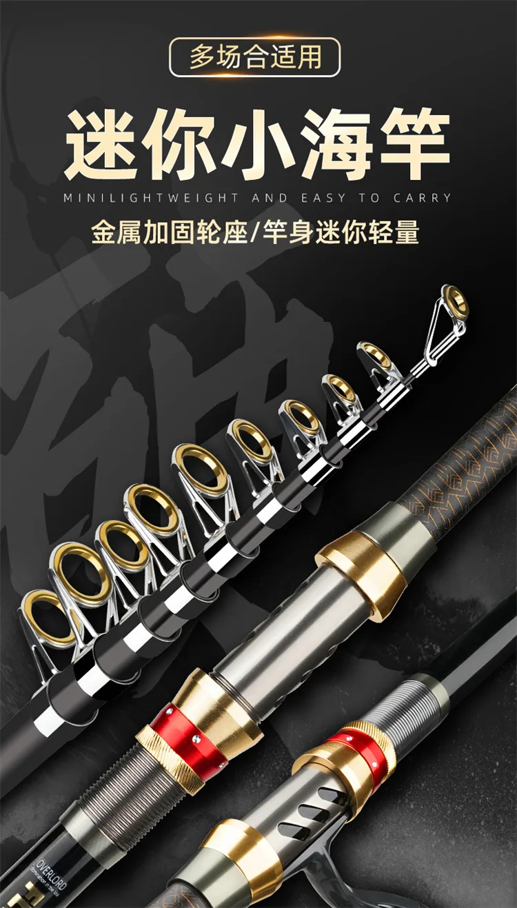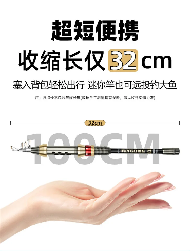 Cañas de pescar de mar cortas GTOFYU 99% de carbono, caña de pescar telescópica de fibra de 1,0-2,4 M, aparejos de pesca telescópicos giratorios