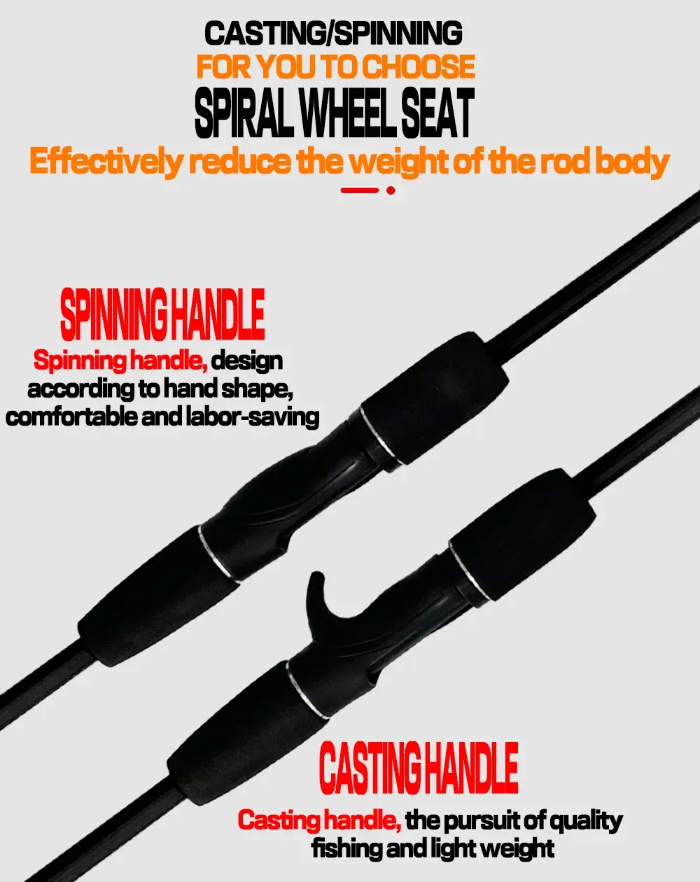 Con una longitud de 1,68 M/1,8 m y un peso de solo 94g/102G, las cañas de pescar son perfectas para juegos ligeros, plantilla de metal, perca, besugo, trucha, pulpo, cola de pelo, ballena, pez rojo americano y aconitum, etc.