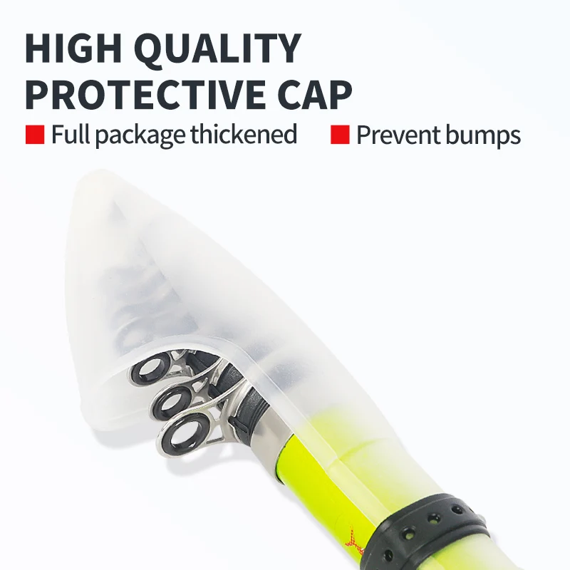 Preste especial atención a los obstáculos circundantes al extraer la caña de pescar, para evitar que los obstáculos dañen la caña.No utilices demasiada fuerza al aflojar la articulación, o correrás peligro de apretarte la mano.La caña telescópica con anillo guía debe retirarse en línea recta cuando se retire la tapa protectora y la caña de pescar se romperá si se retira.