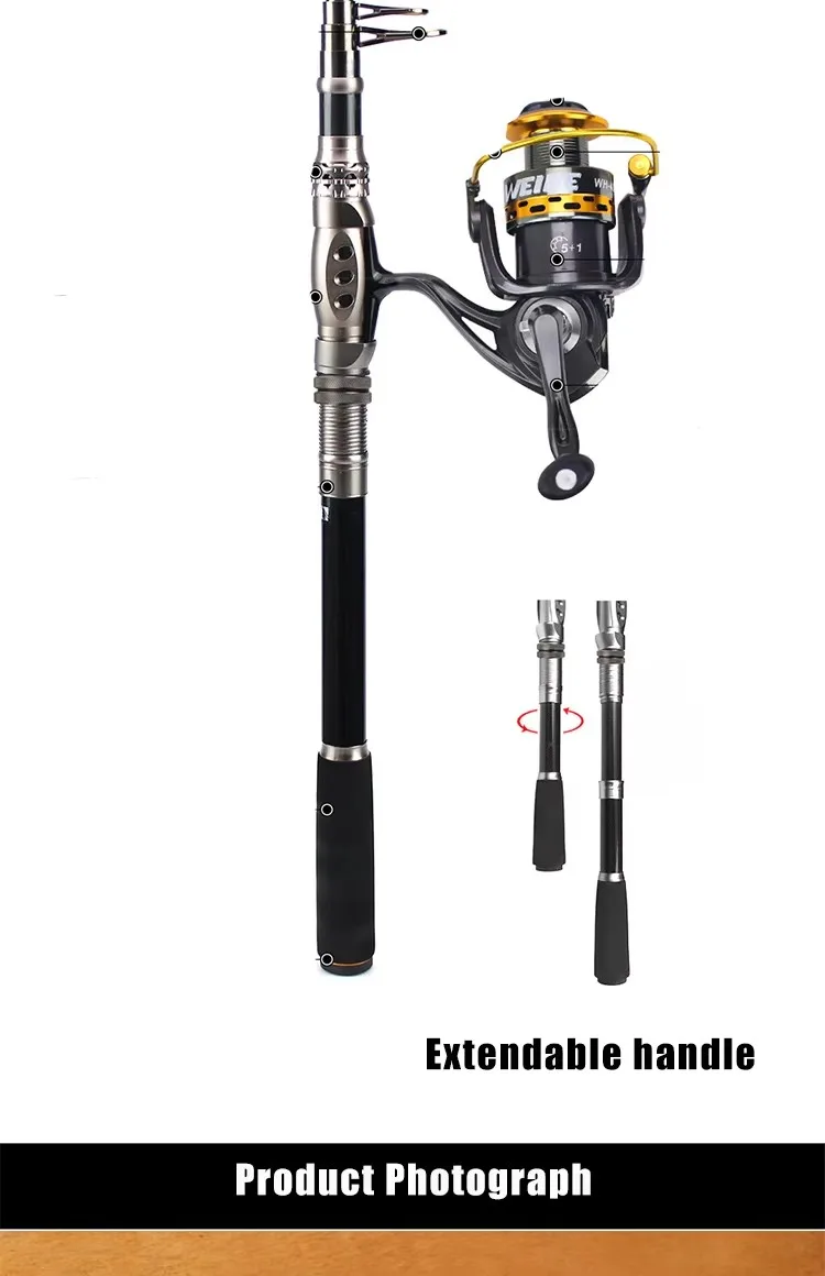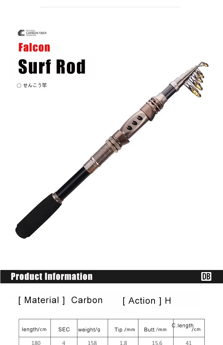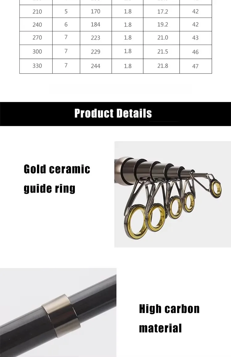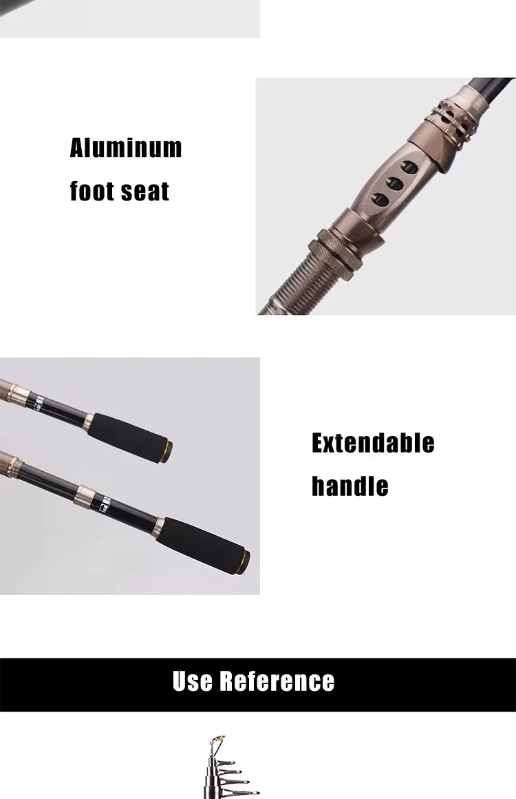 Cañas de pescar telescópicas de fibra de carbono, peso ultraligero, para agua salada y dulce, 1,8-3,3 m