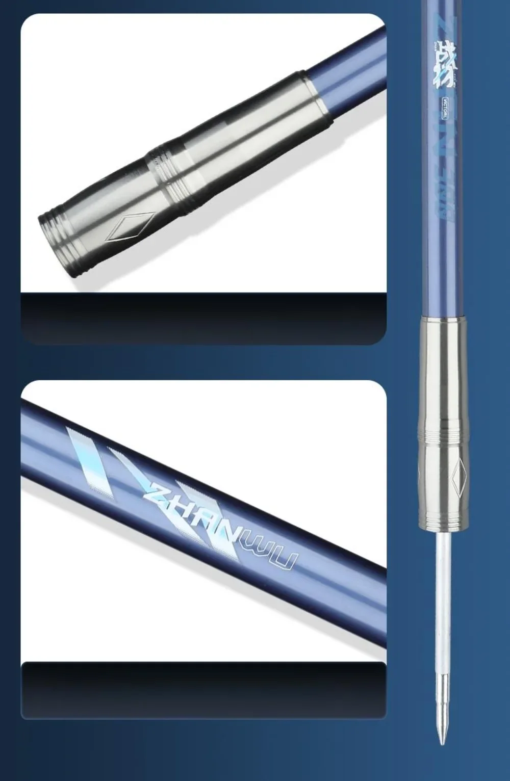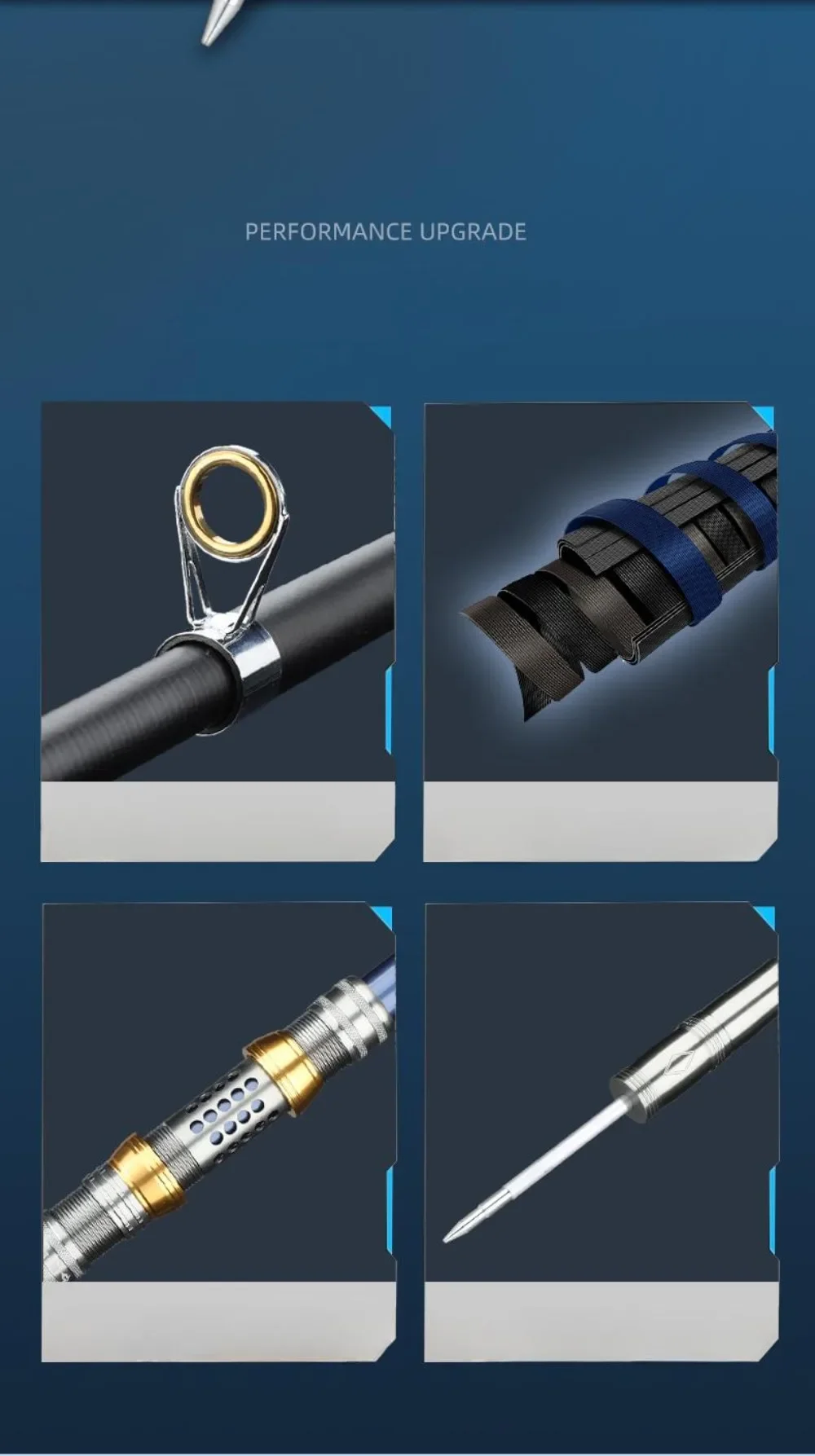 1. Esta caña de pescar está hecha de fibra de carbono y la tela de carbono de 7 capas no es fácil de romper, es fuerte y duradera.