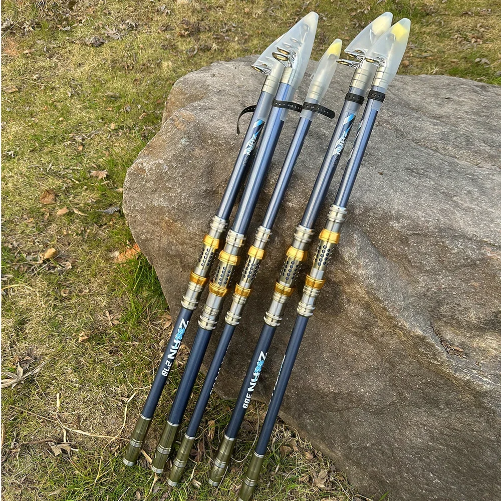 Cañas de pescar telescópicas para Surf, 2,1/2,4/2,7/3,0/3,6 m, potencia giratoria de carbono, lanzamiento de Surfcasting, caña de pescar de fundición larga costera