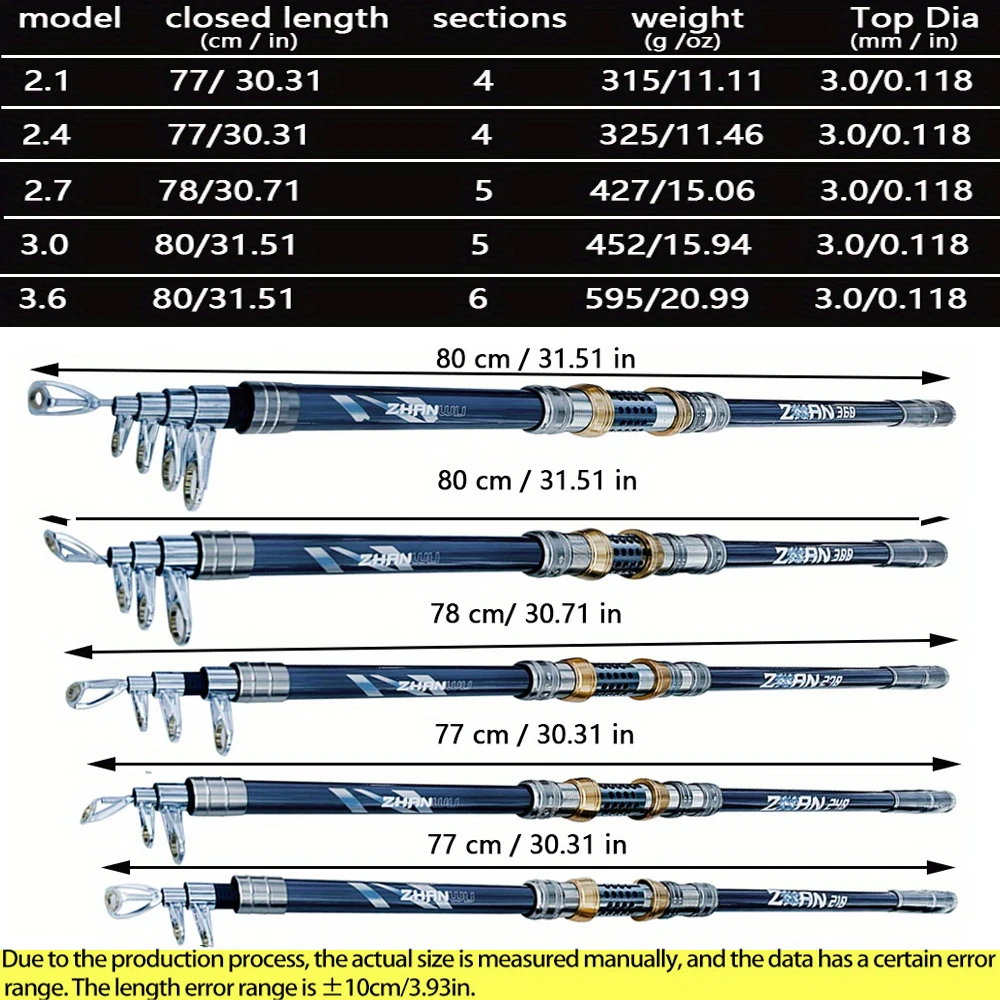 Cañas de pescar telescópicas para Surf, 2,1/2,4/2,7/3,0/3,6 m, potencia giratoria de carbono, lanzamiento de Surfcasting, caña de pescar de fundición larga costera - imagen 5
